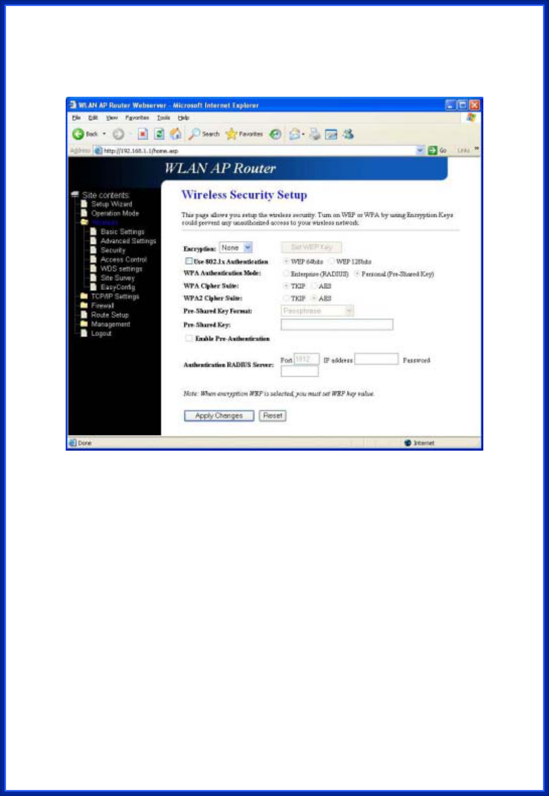 supporting WEP, WPA-PSK, WPA (Wi-Fi Protected Access) TKIP/AES and RADIUS. With