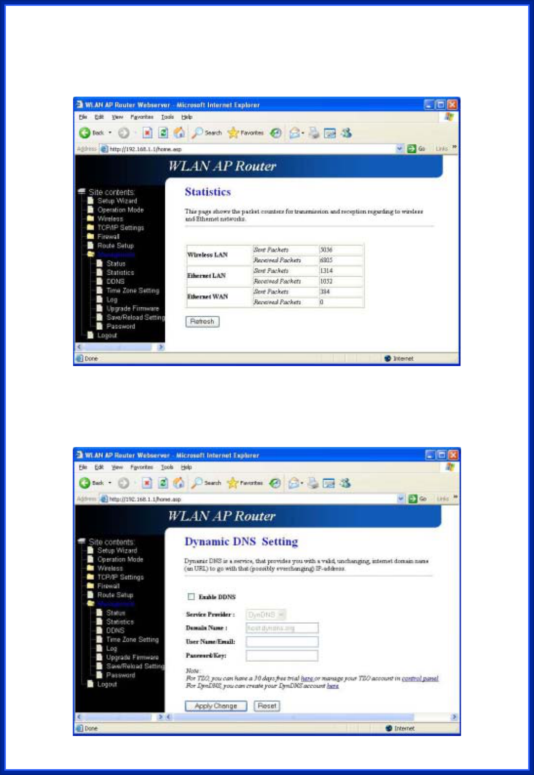 This page shows the packet counters for transmission and reception regarding to wireless and