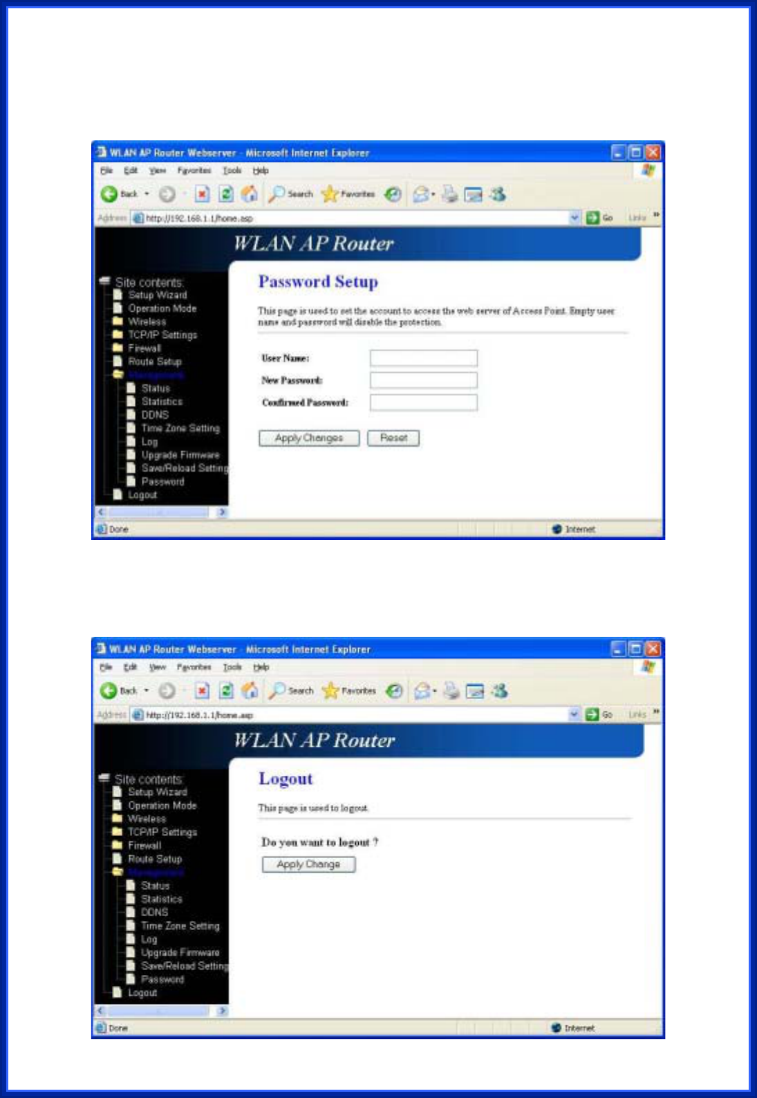 Click “Apply Change” button to logout the webserver. And then, you will see the below