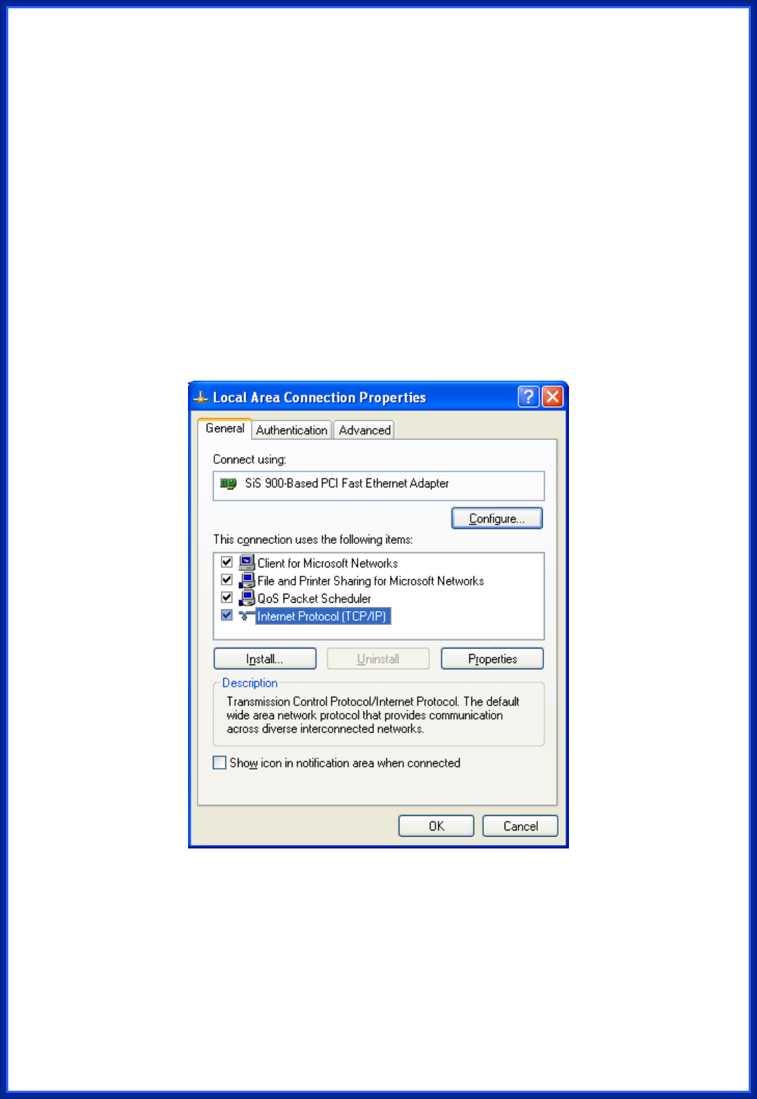 “Properties” for the TCP/IP protocol.