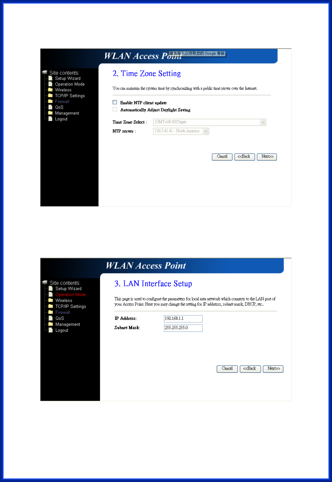 3.7.4 Time Zone Setting