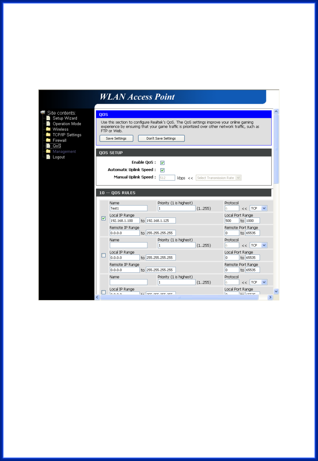 4. Click “Save Settings” to save QoS configurations.