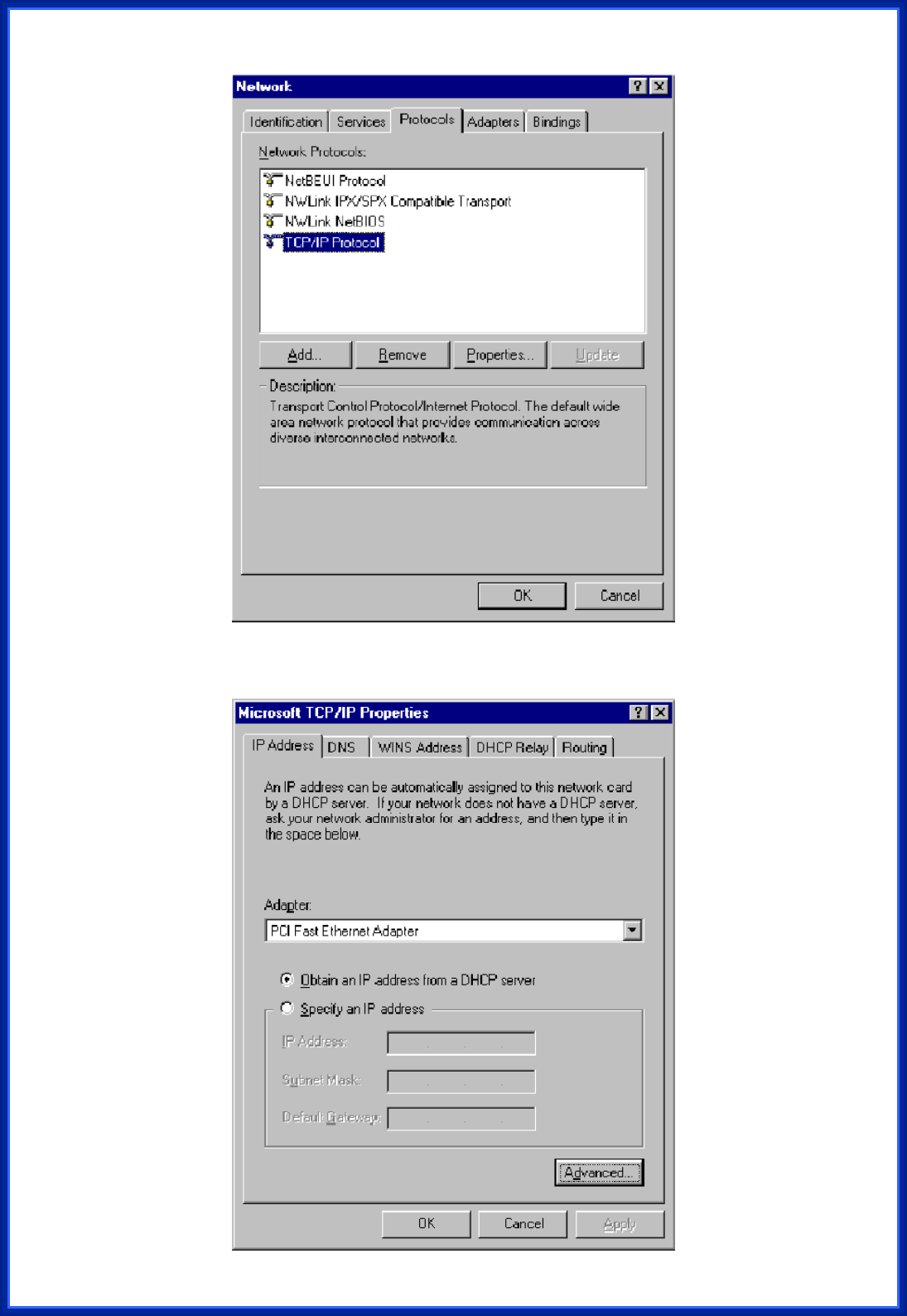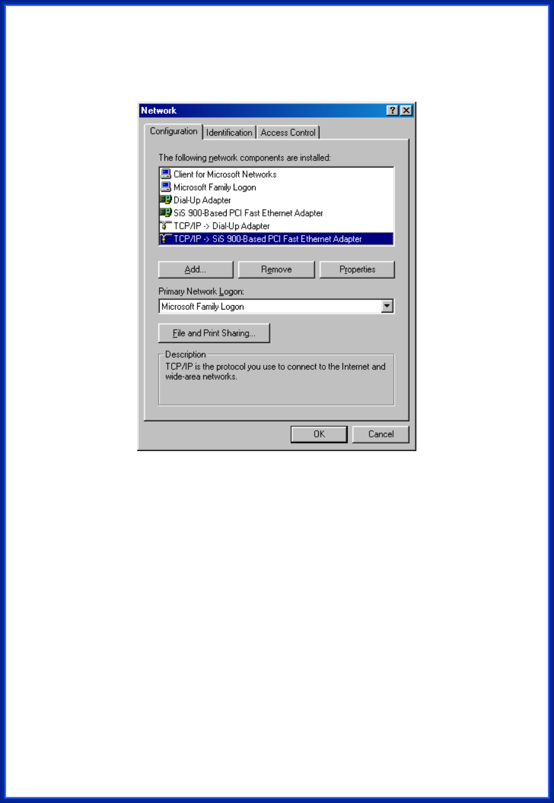can check these settings by using “Control Panel Æ Network” to check the