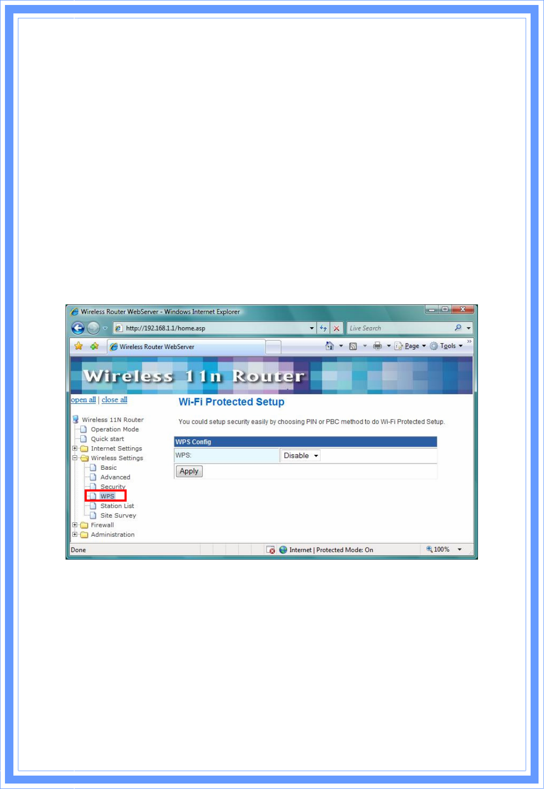 This function allows you to change the setting for WPS (Wi-Fi Protected Setup). WPS can help