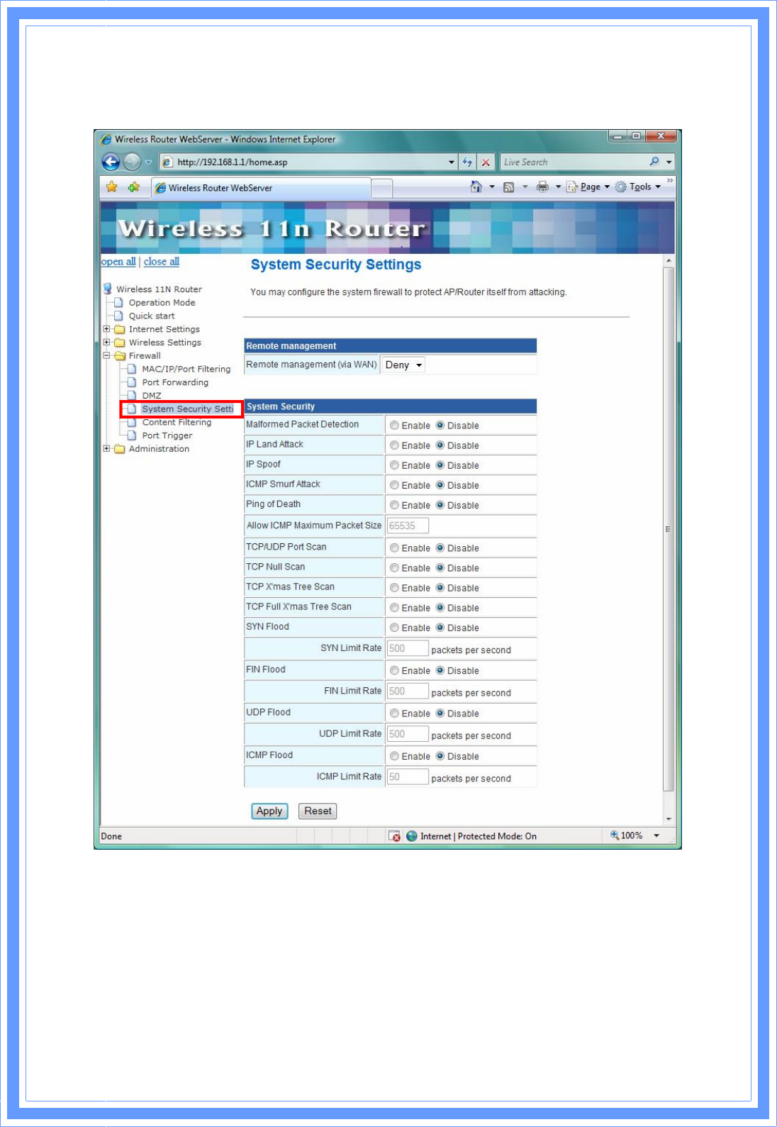 You may configure the system firewall to protect AP/Router itself from attacking.