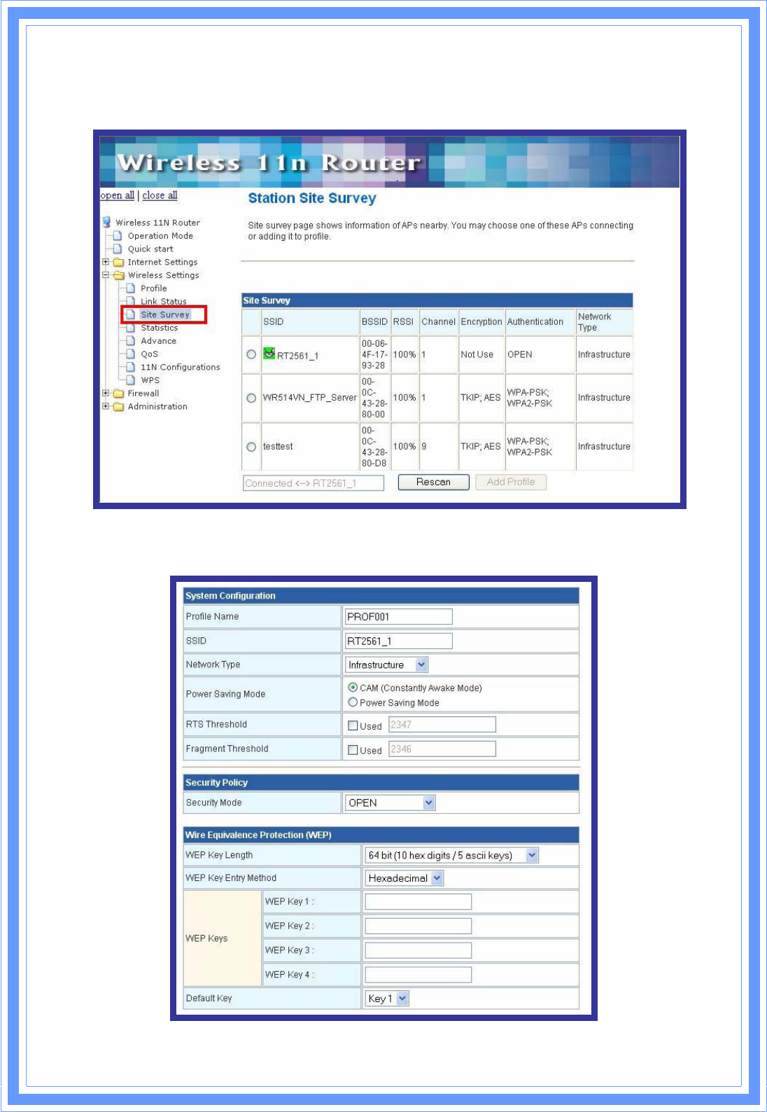 [Site Survey] Station Site Survey page can shows information of APs nearby, you can