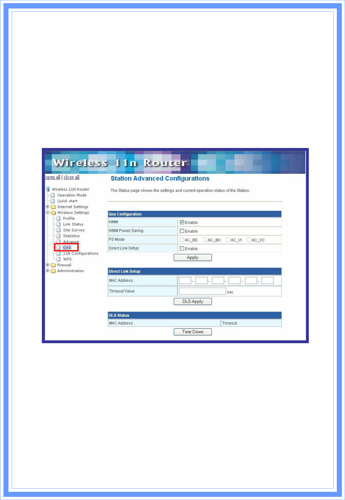 [QoS] The QoS configuration page can allow you to configure WMM and Direct Link settings