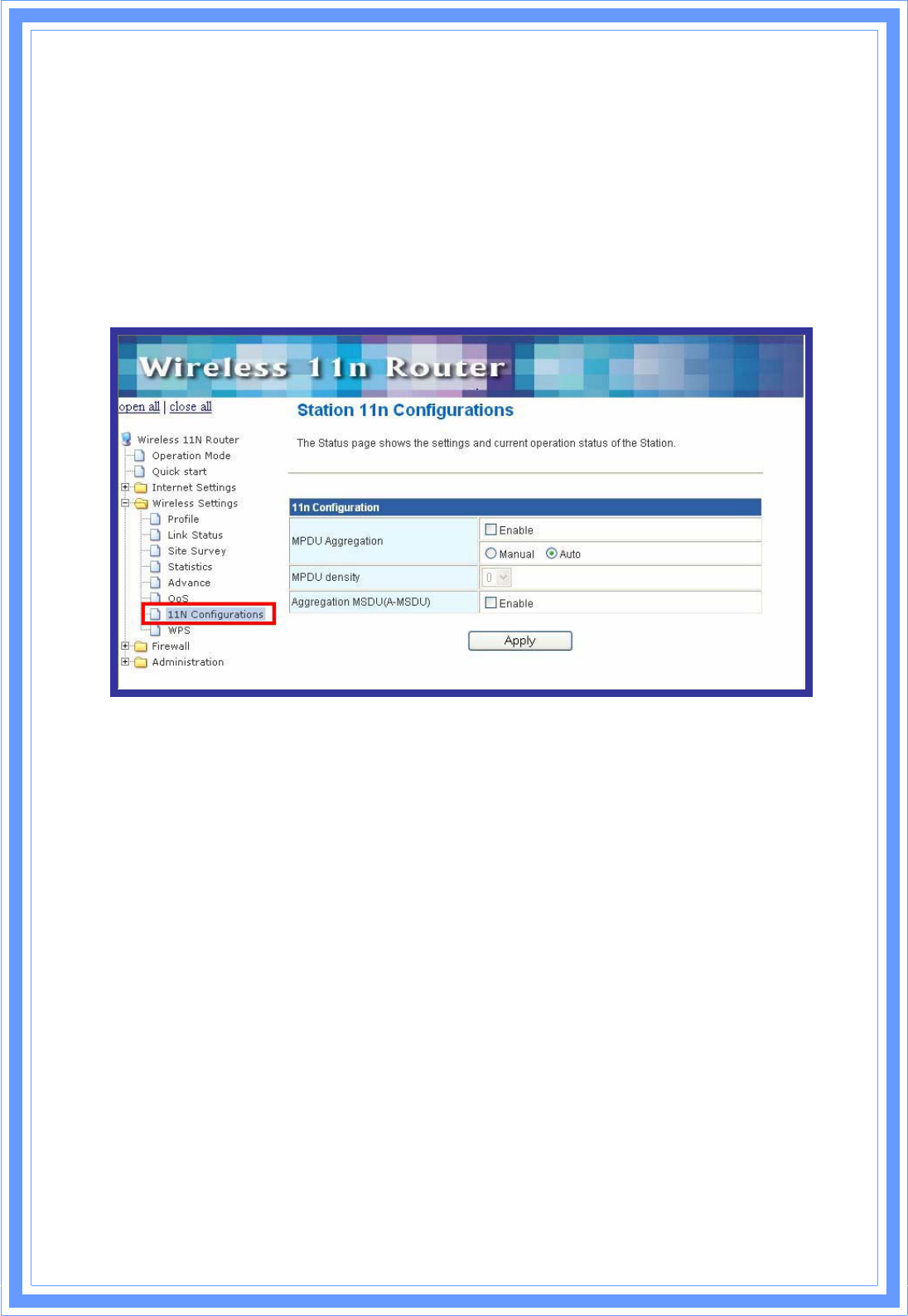 MPDU Density: Select 0~7 to configure the MPDU density.