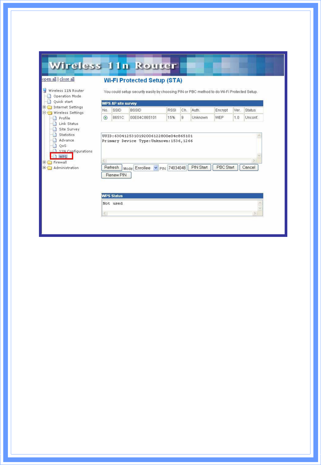 PIN Start: Start to add to Registrar using PIN configuration method. IF STA Registrar,