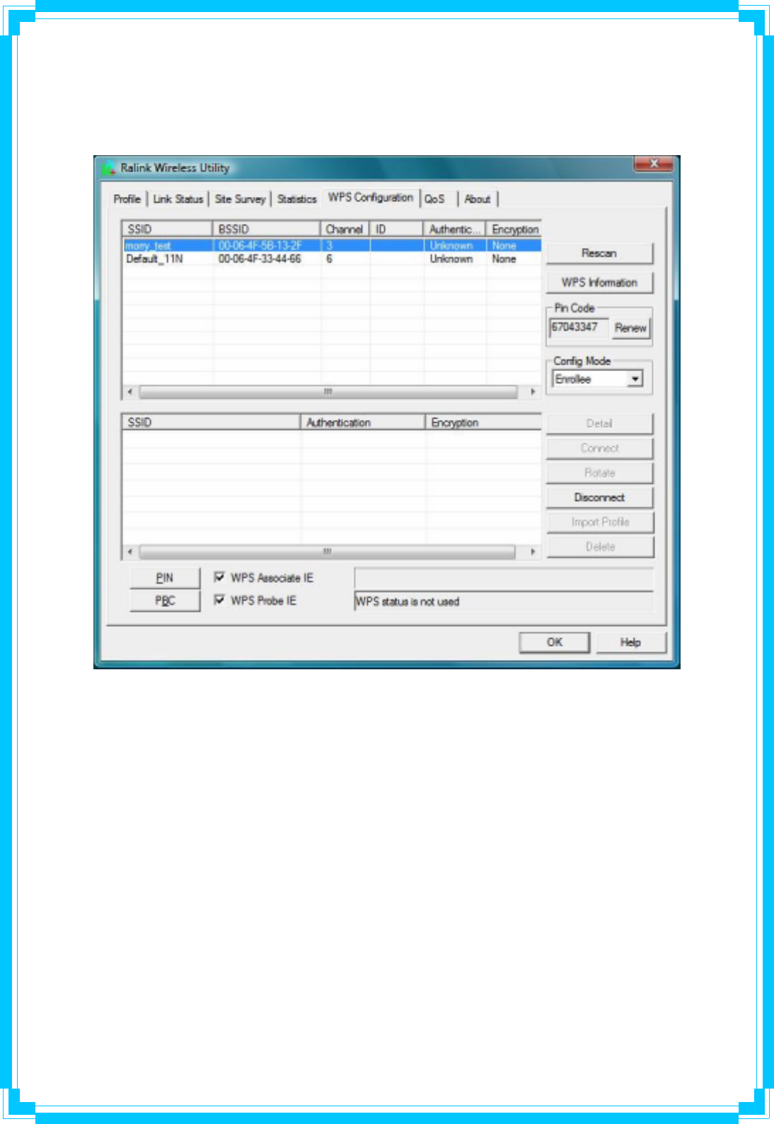 Connect with WPS Profile: Clicking the “Connect” button will connect to AP with the