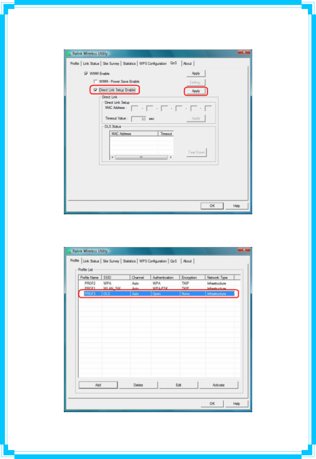 Step1: Click “Direct Link Setup Enable”. And Click “Apply” button