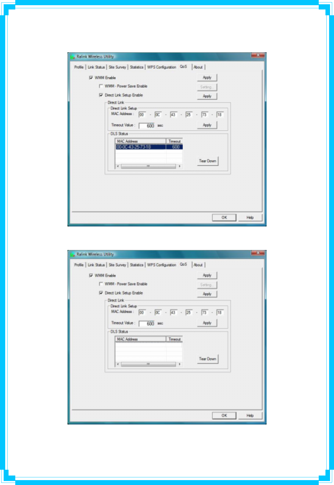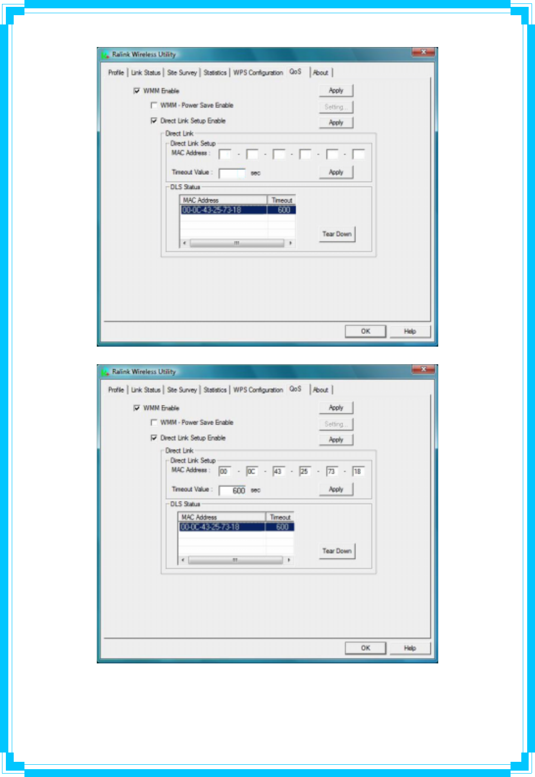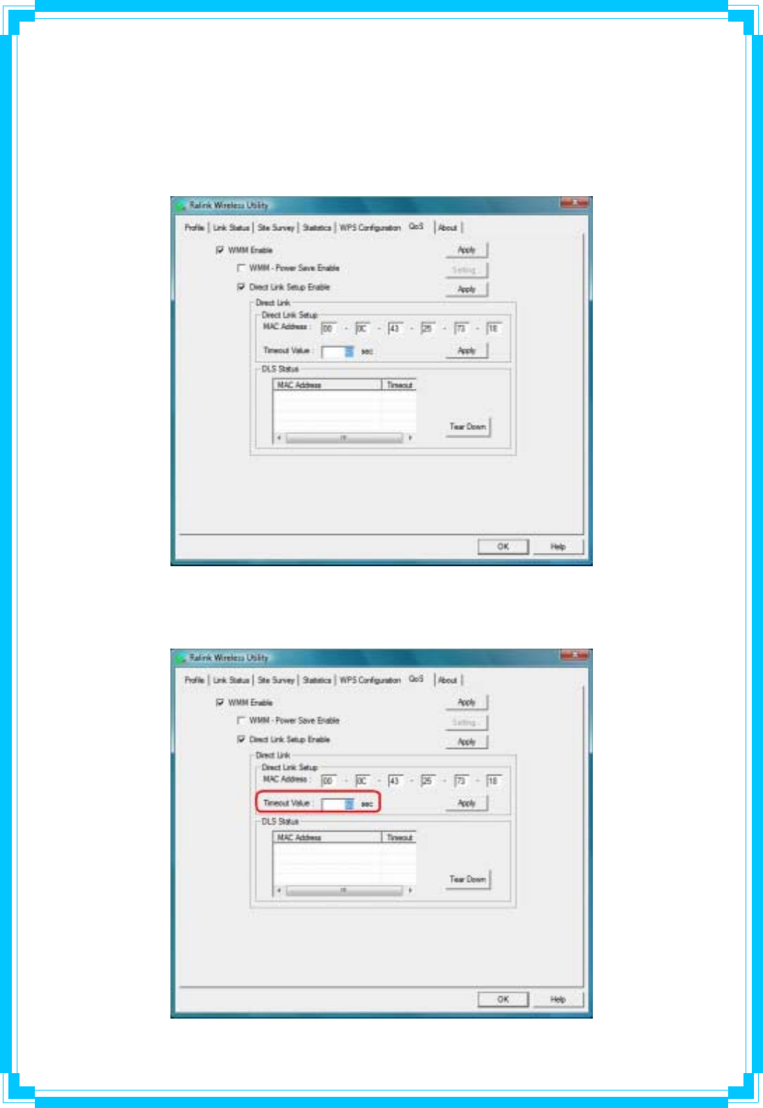 1. Fill in the blanks of Direct Link with MAC Address of STA. The STA must conform to two