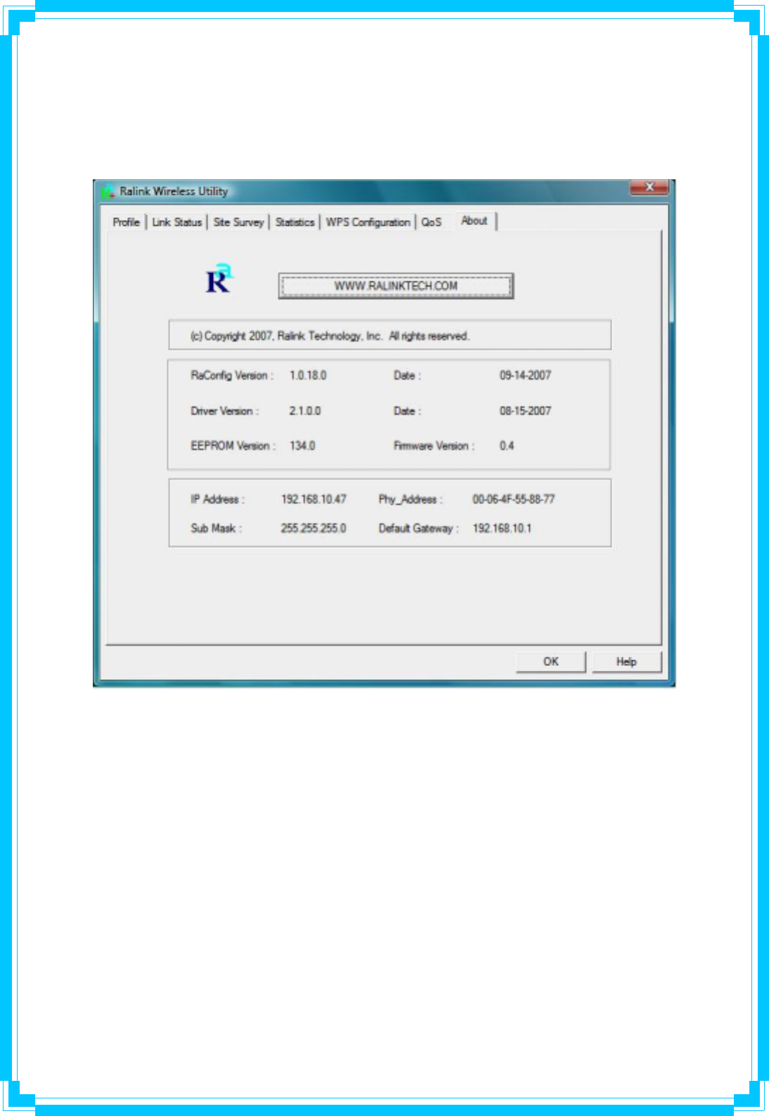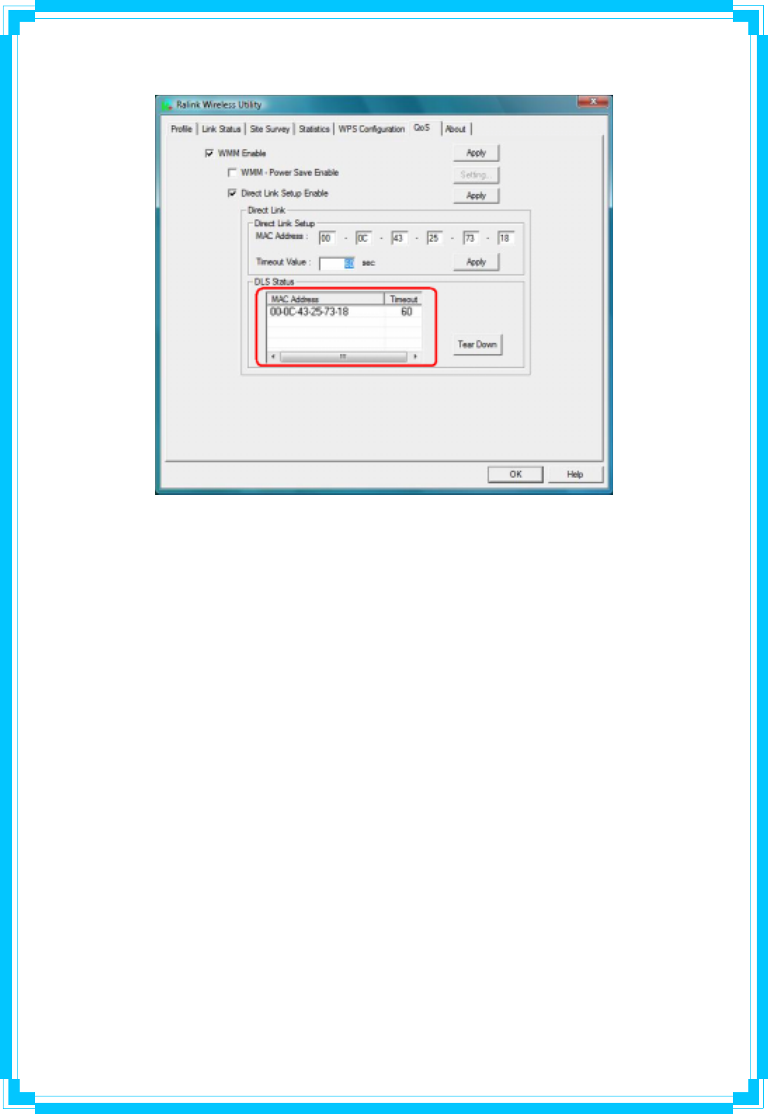 The QoS Page of RaConfig. It involves “WMM Enable”, “WMM – Power Save Enable” and