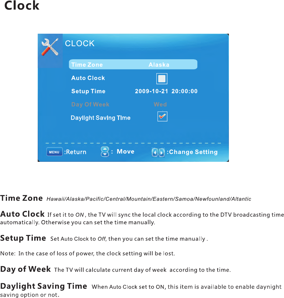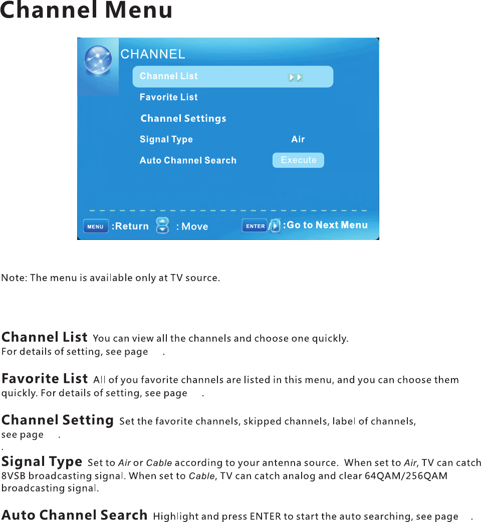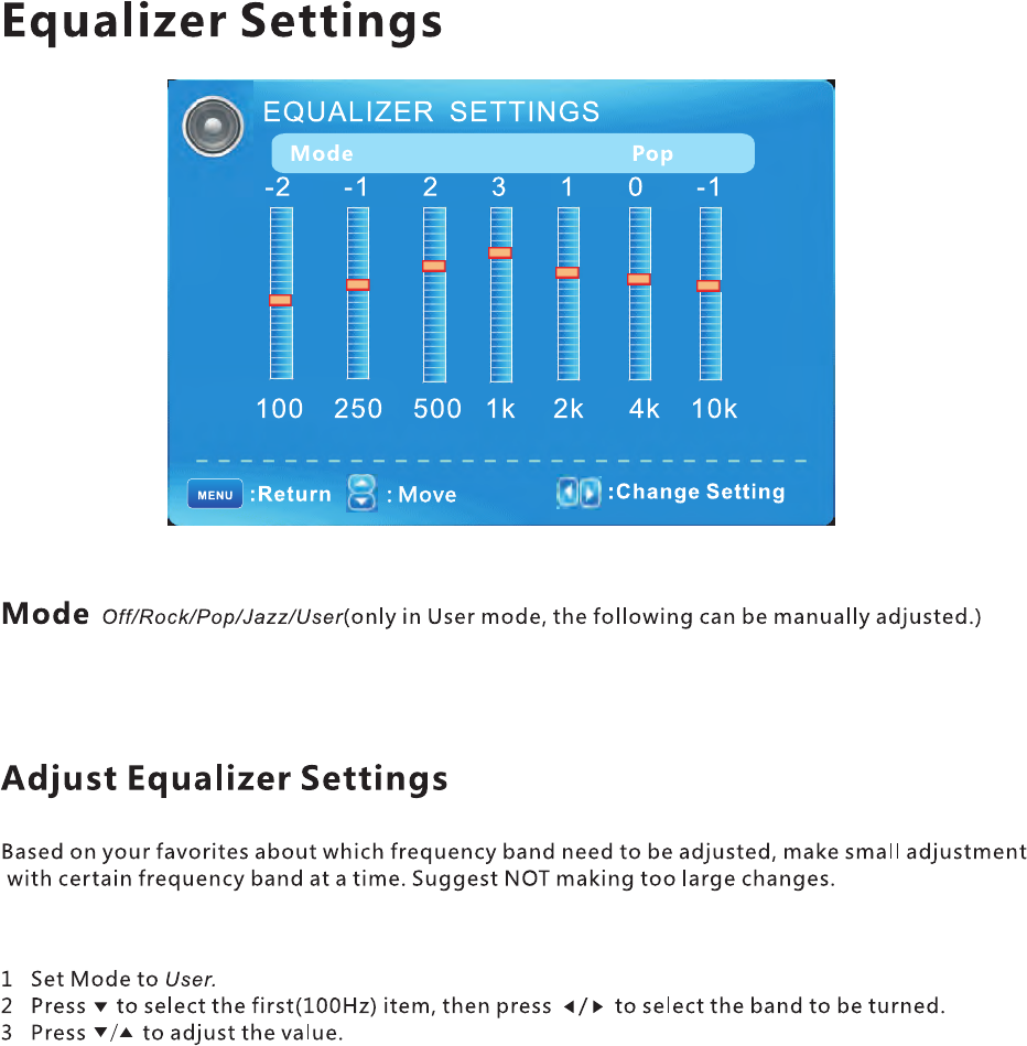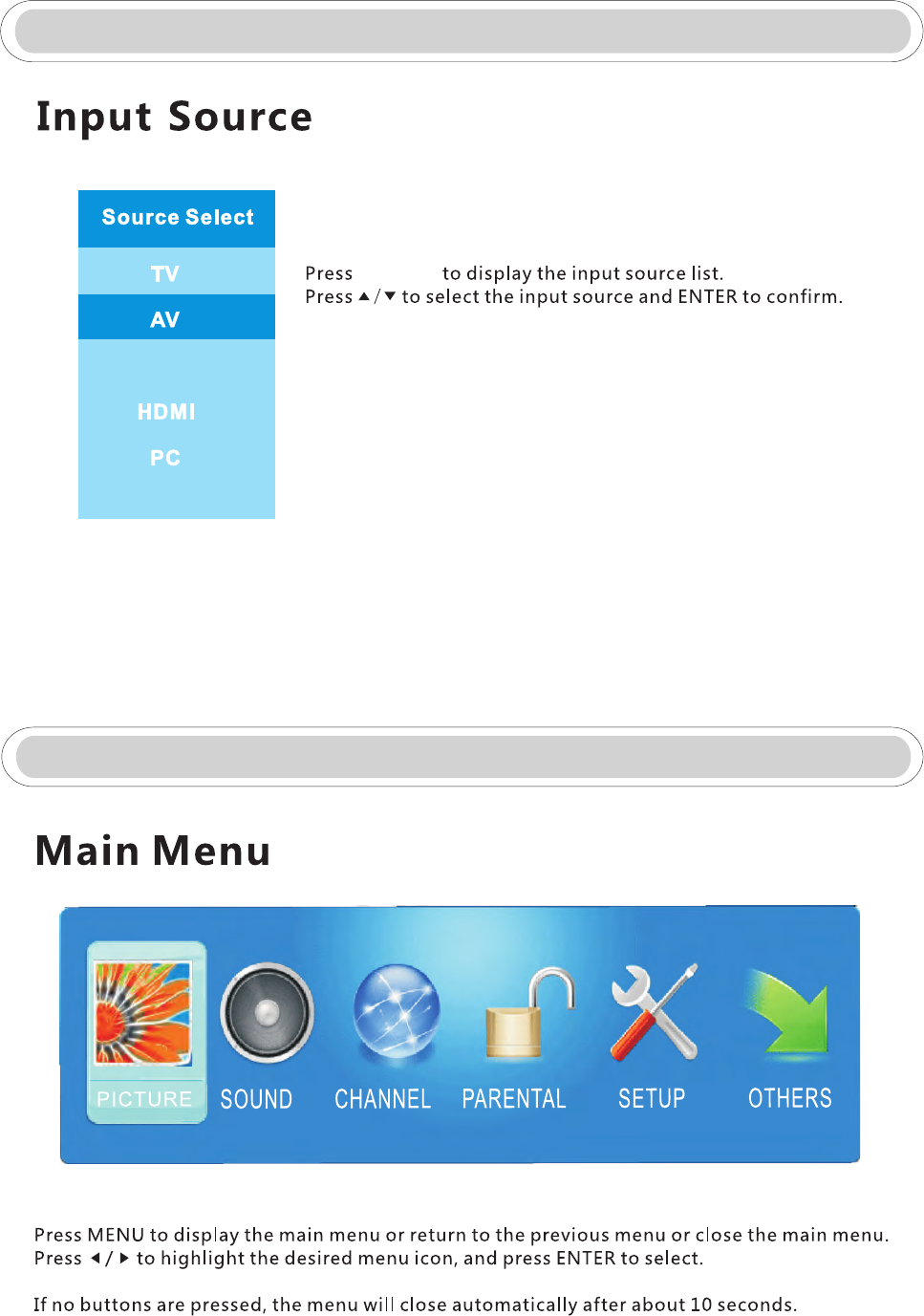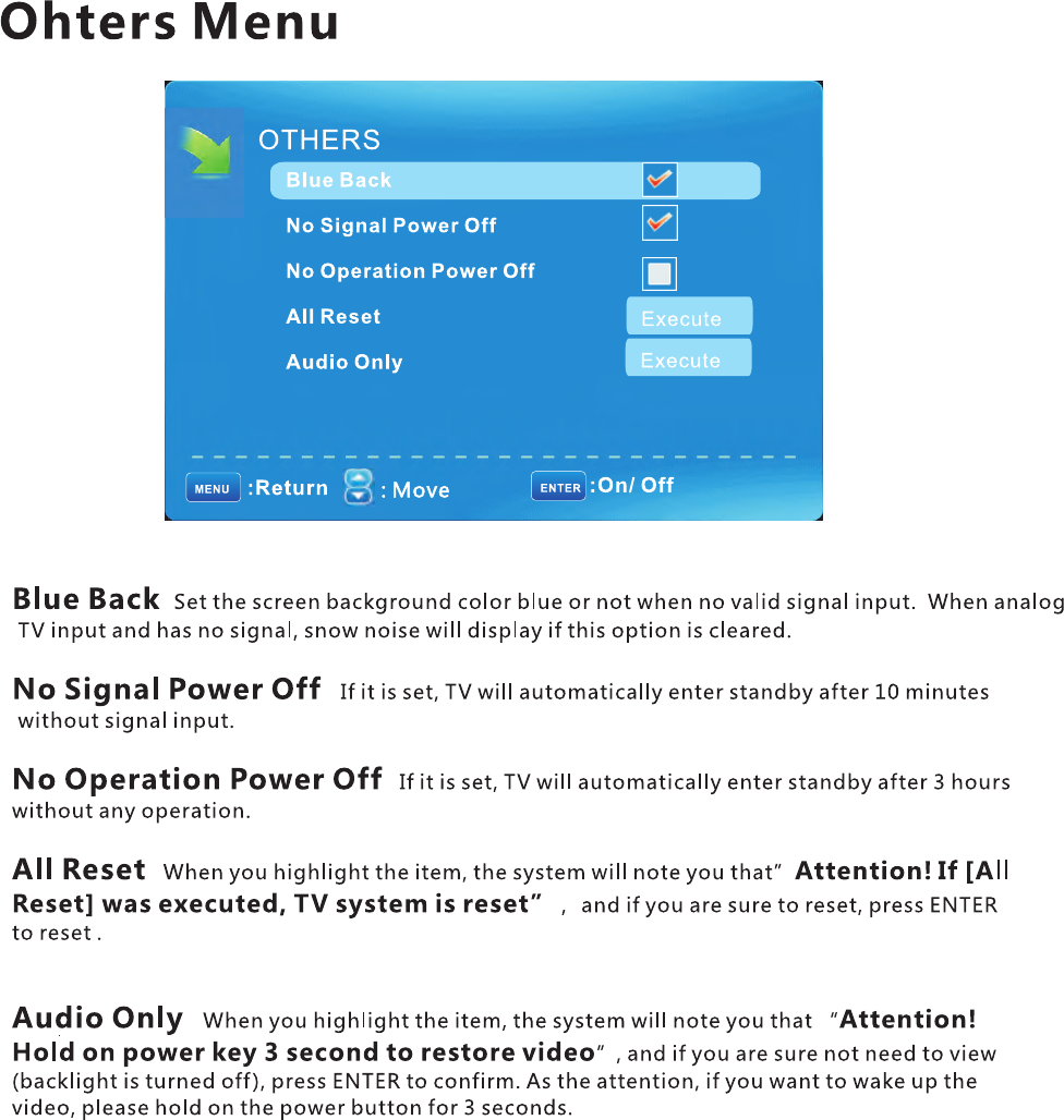 the items in each menu,then use “ ” buttonto enter the selected item. If you then change any setting,