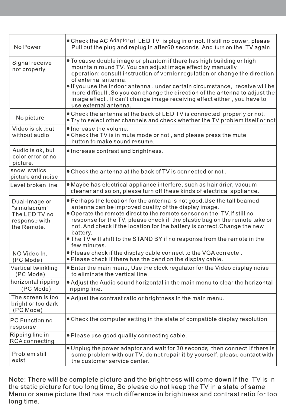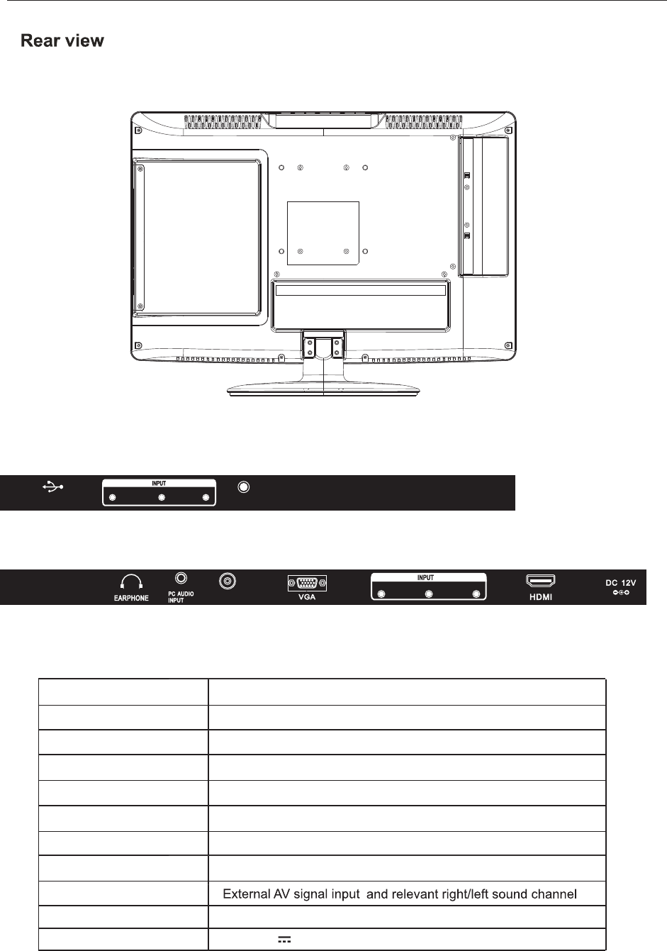 IN:TV, AV, YPBPR, PC AUDIO, EARPHONE, HDMI.