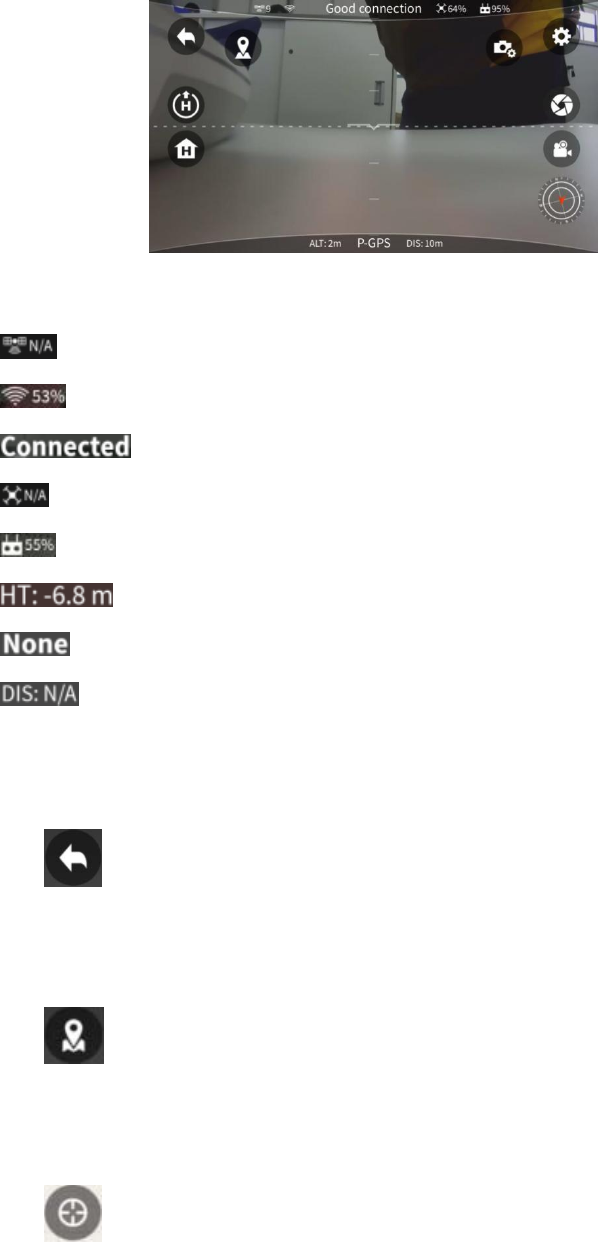 home’ icon in the APP interface, the aircraft will return to home automatically. (Click Return to