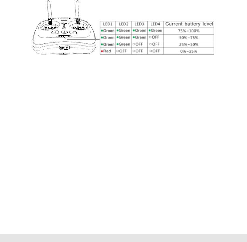 on and the blue LED indicator light at the end keep on. At this moment, the aircraft will rise or