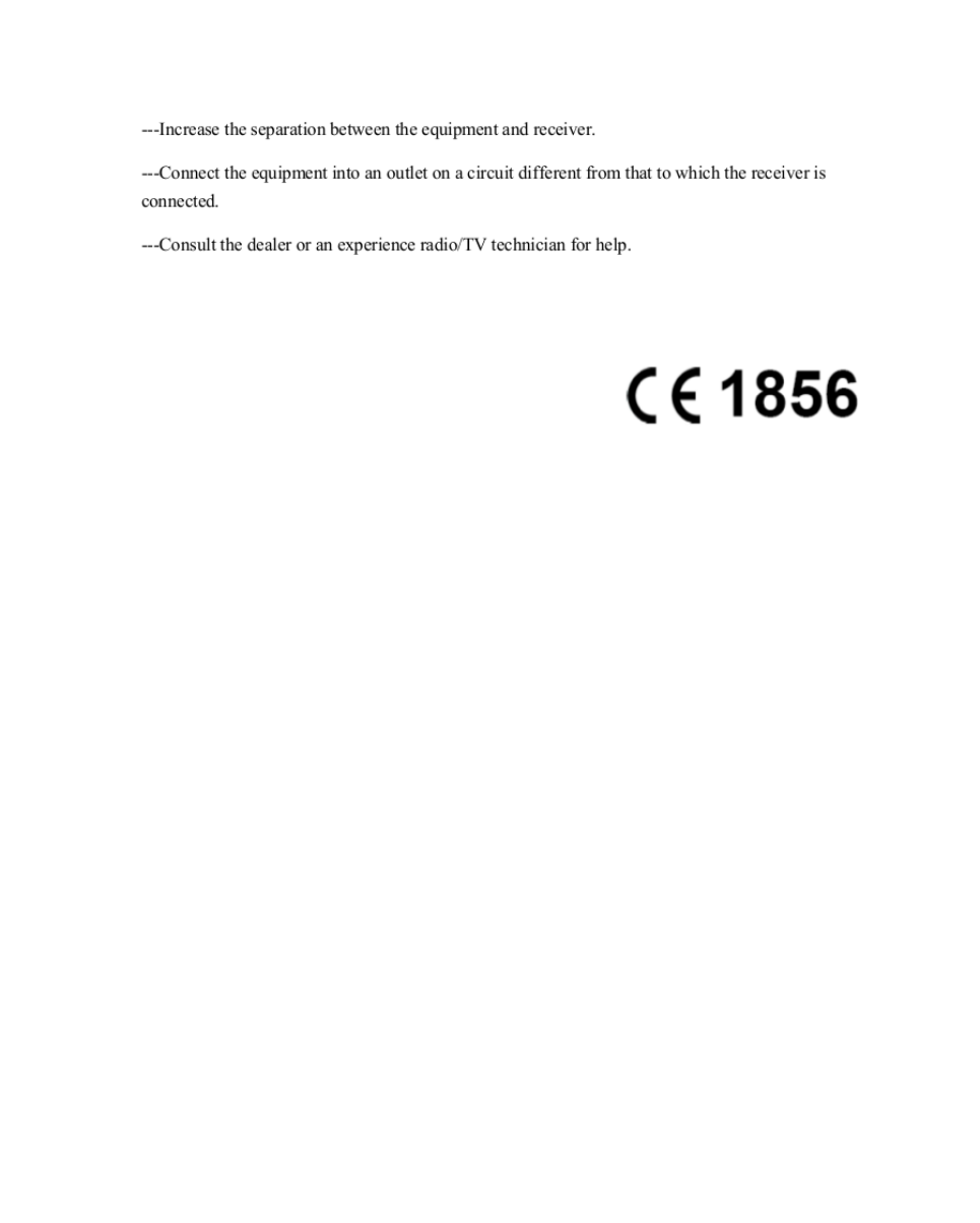 equipment off and on, the user is encouraged to try to correct the interference by one or more of