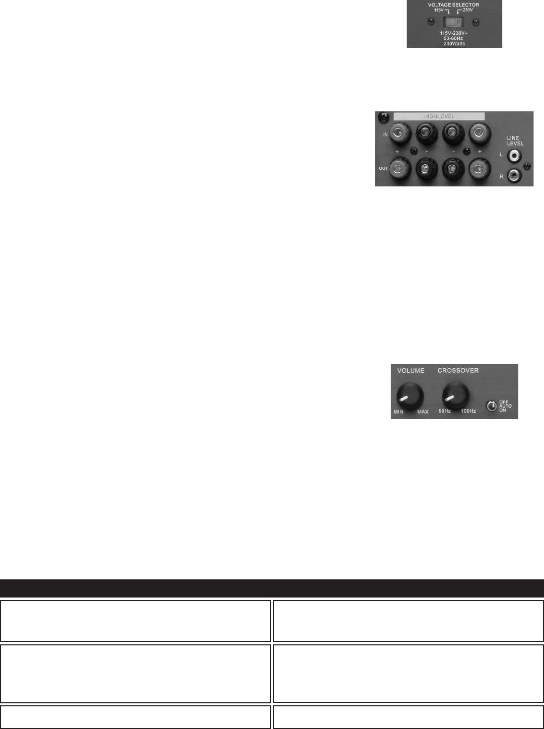 The S10 / S8 Powered Subwoofer is designed to function trouble-free. Most problems occur due to operating errors. If you have a problem, please
