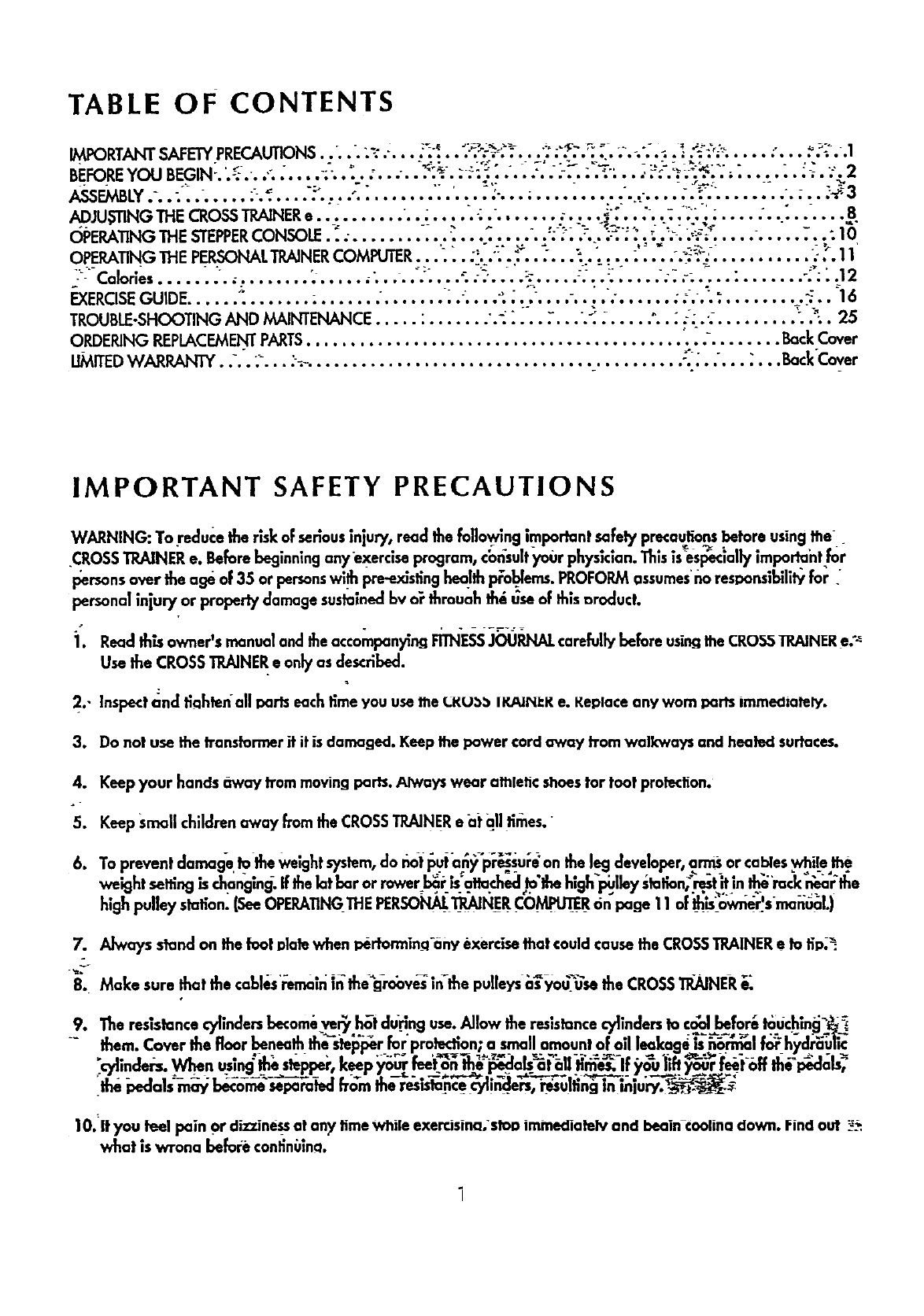 CROSS TRAINER e. Before beginning any i_xerci_ program, consultyour physician. Thisis'especially im,p_.,rtant_r
