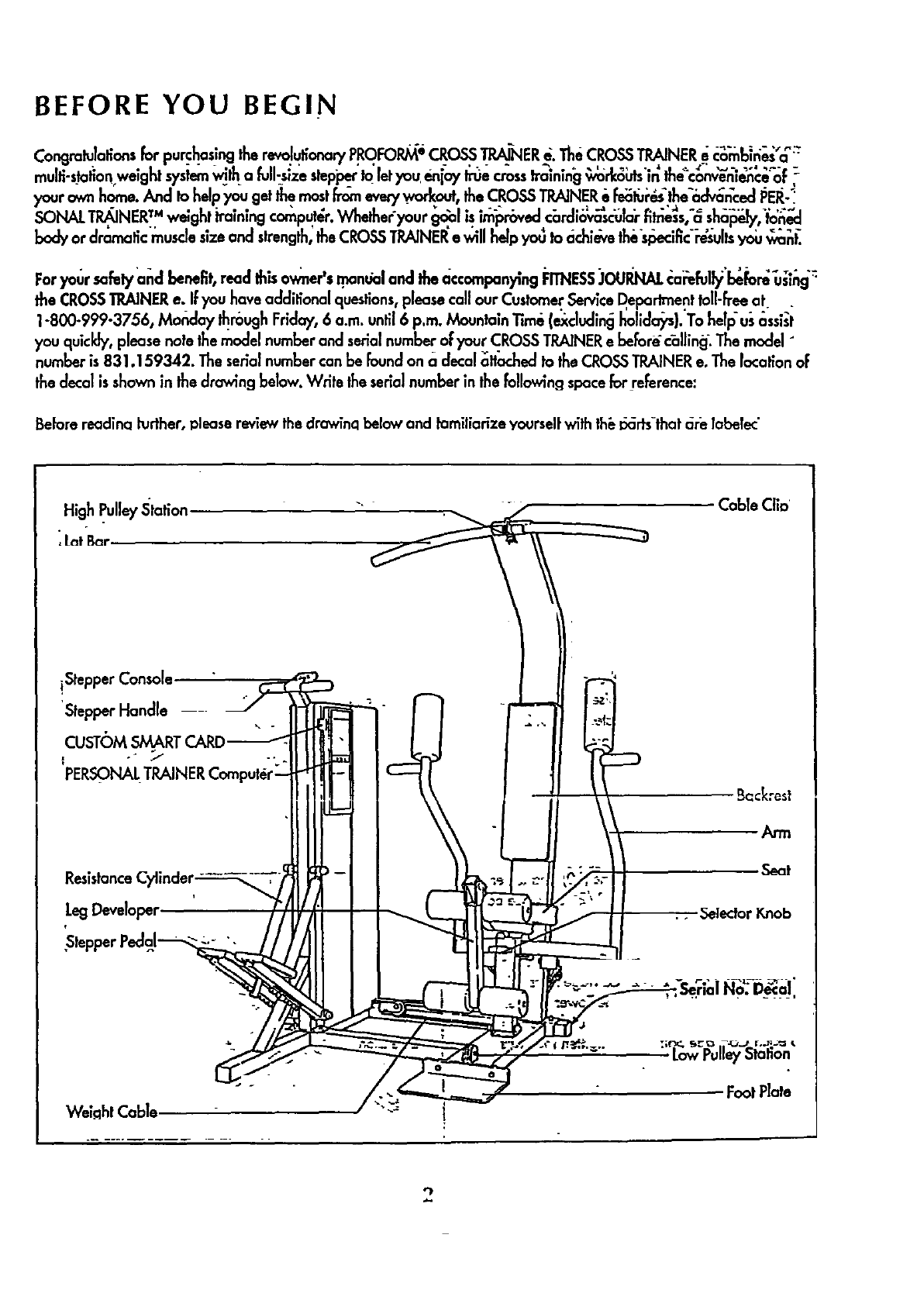 the CROSSTRAINERe. IFyou have additional questions, please call our CustomerServTceD.eparlmenttoll-flee at