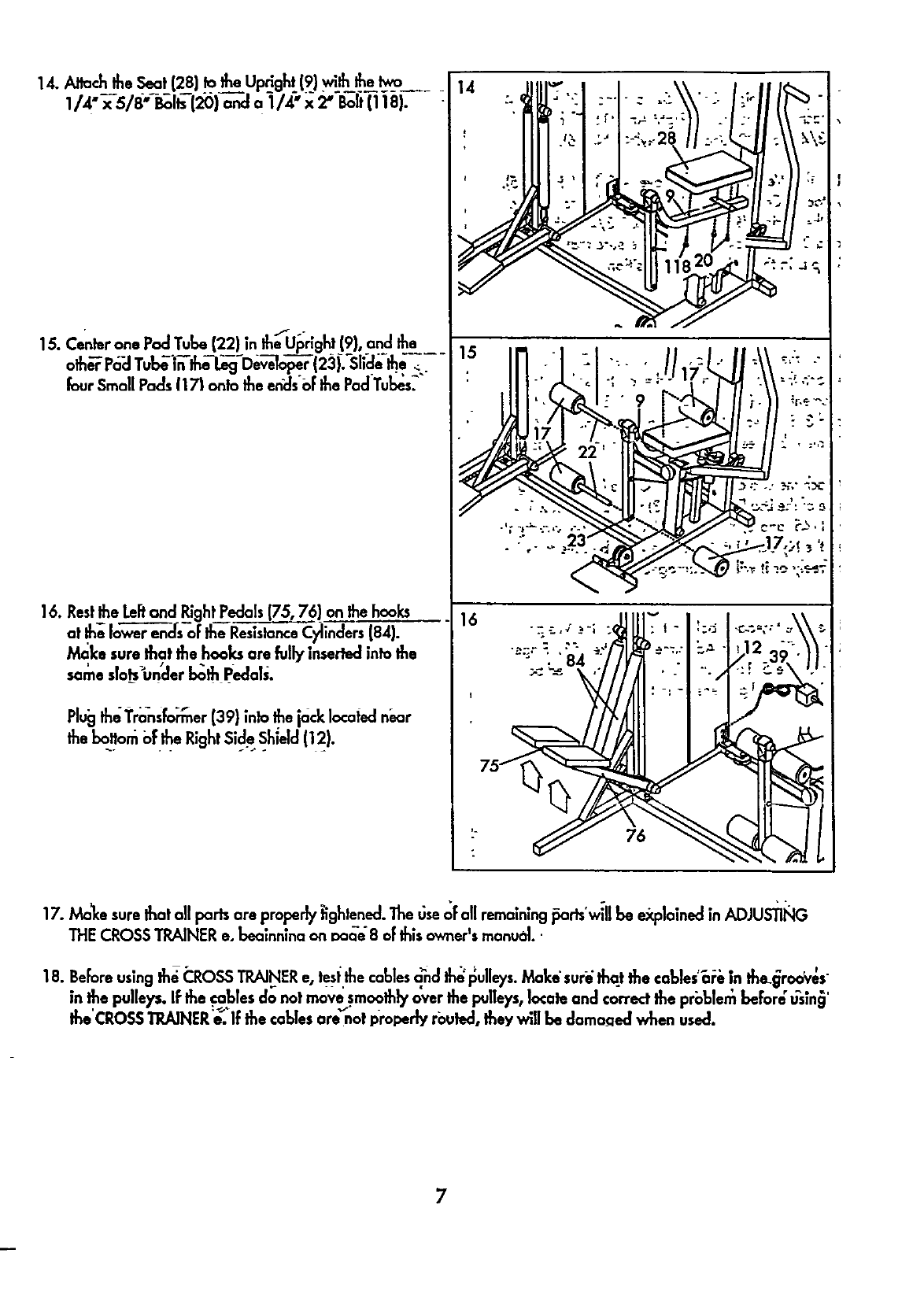 8. Make sure that the cables'i:ematnin'the_g-robv_ in-the pulleys a_yo_-_se the CROSS"II(_JNER_