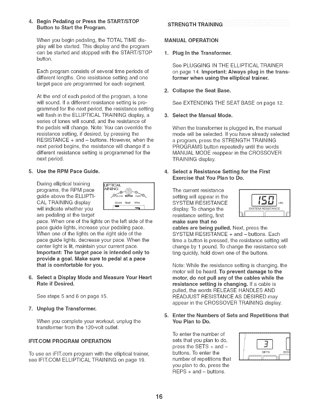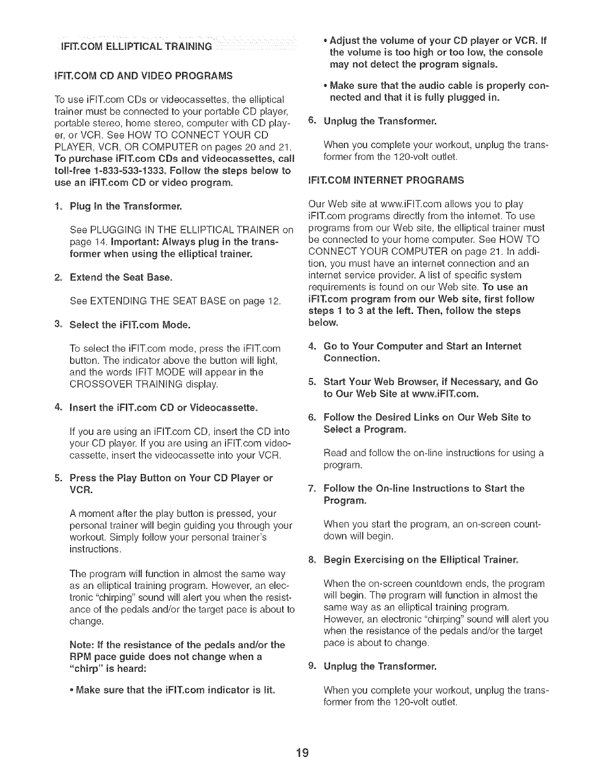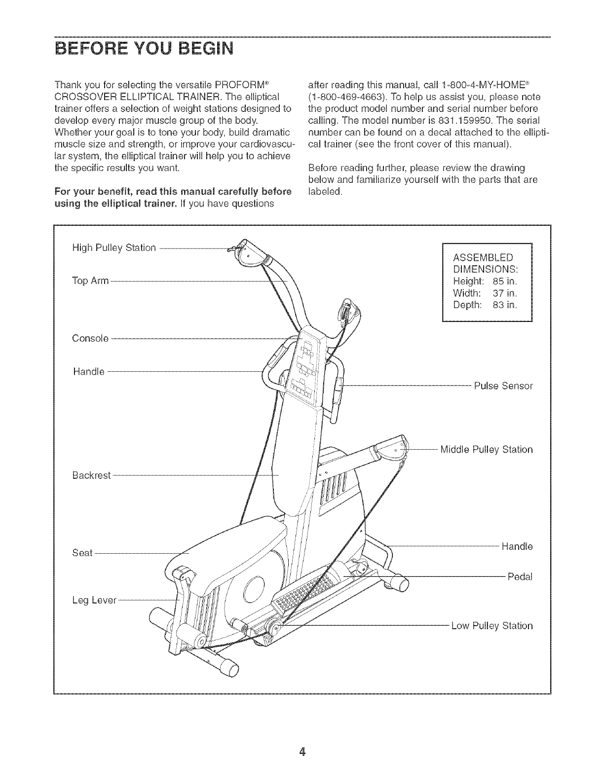 Proform 831159950 User Manual ELLIPTICAL TRAINER Manuals And Guides L0503376