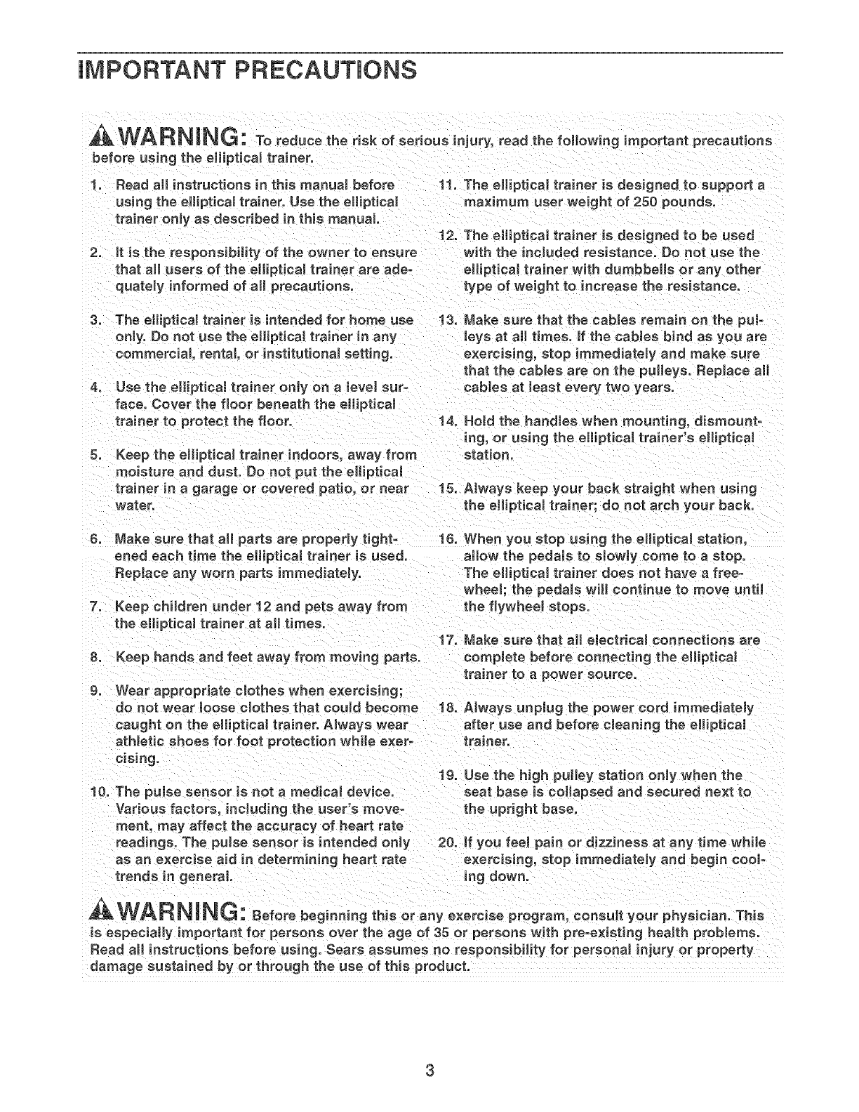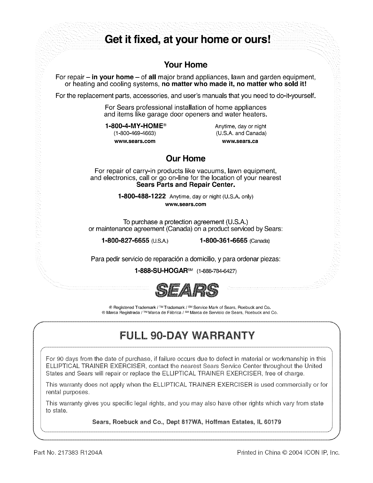 ELLiPTiCAL TRAINER EXERCISER, contact the nearest Sears Service Center throughout the United