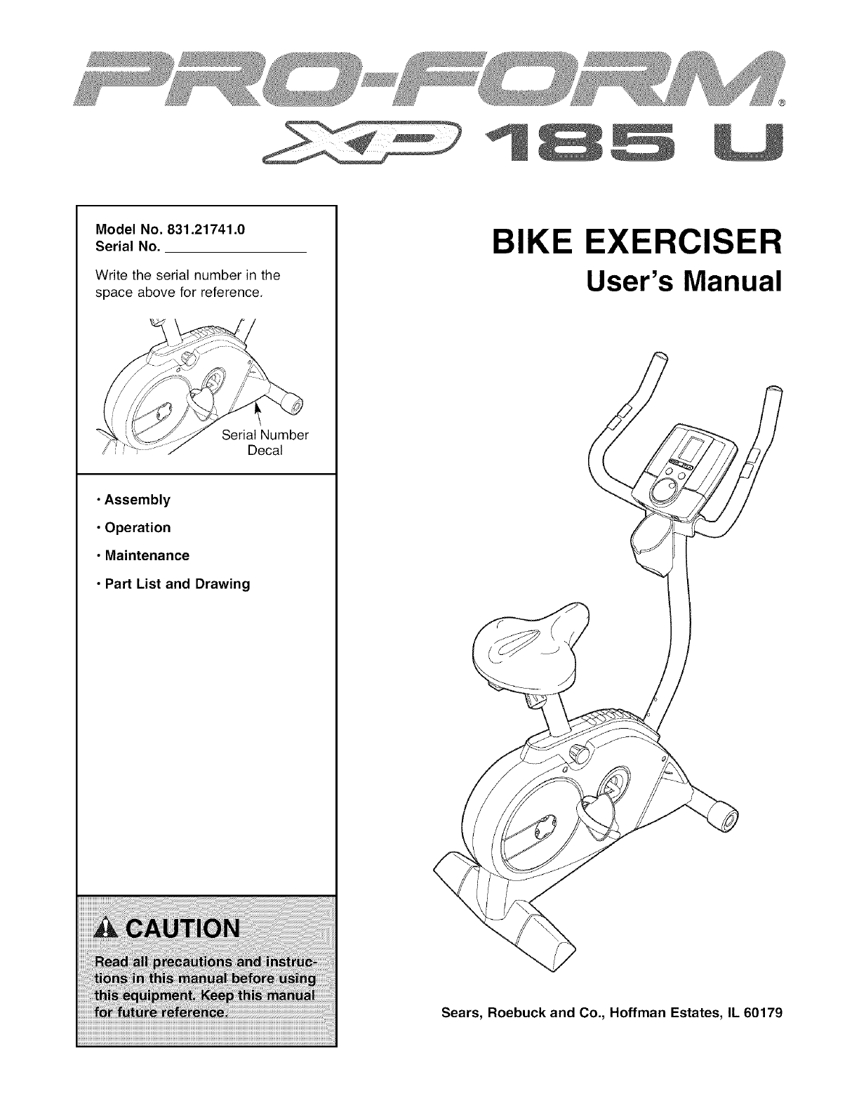 User Manual: Proform 831217410 831217410 PROFORM PROFORM XP 185 U - Manuals and Guides View the owners manual for your PROFORM PROFORM XP 185 U #831217410. Home:Fitness Equipment Parts:Proform Parts:Proform PROFORM XP 185 U Manual