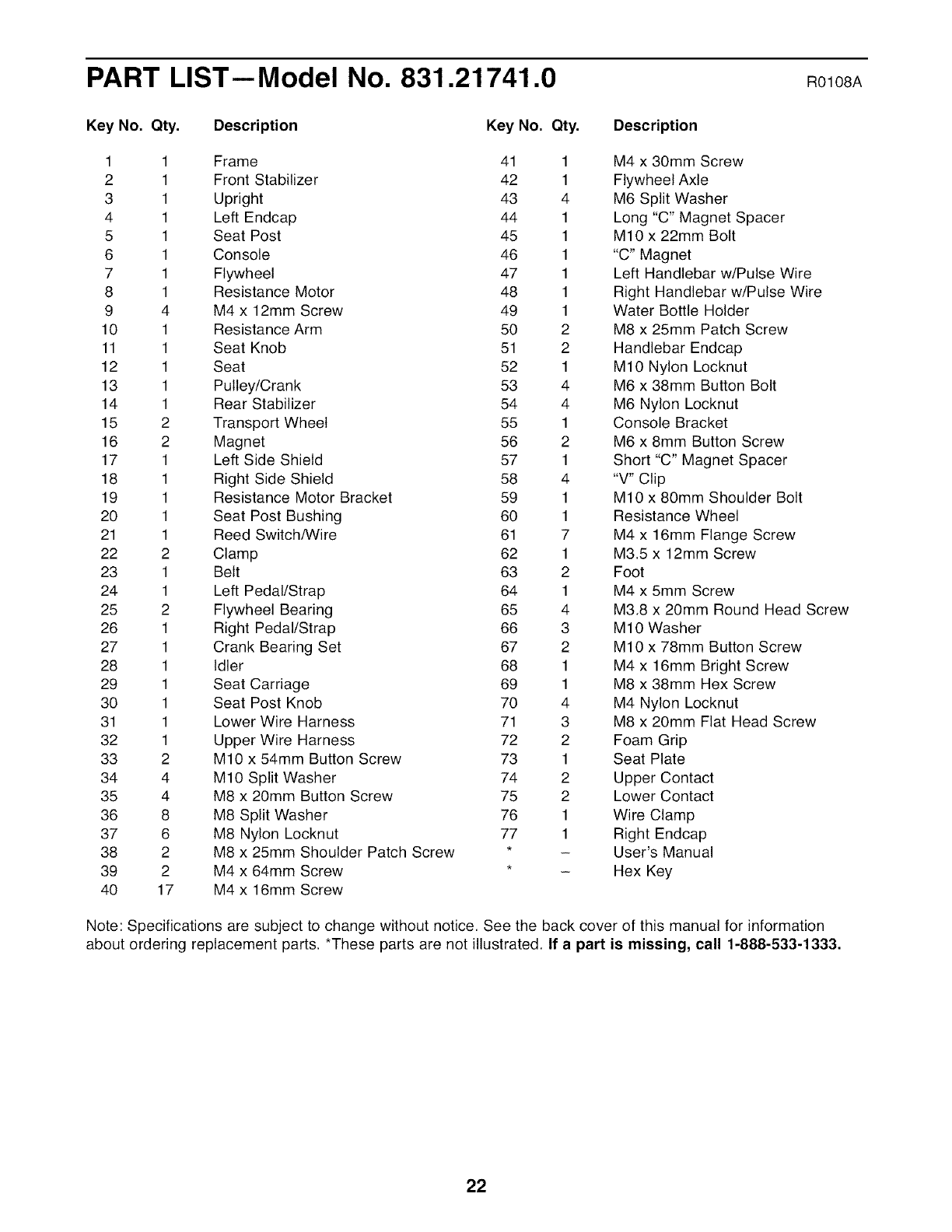 about ordering replacement parts. *These parts are not illustrated. If a part is missing, call 1-888-533-1333.
