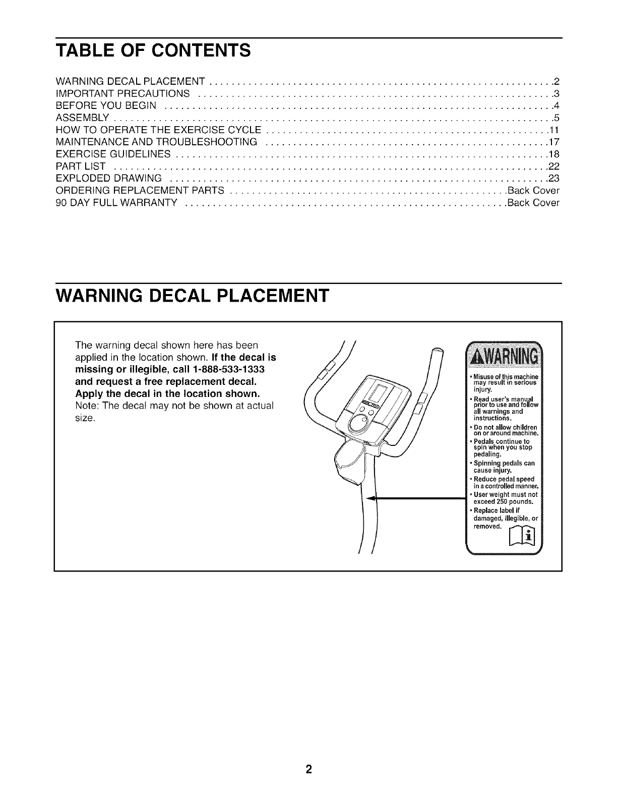 WARNING DECAL PLACEMENT .............................................................. 2