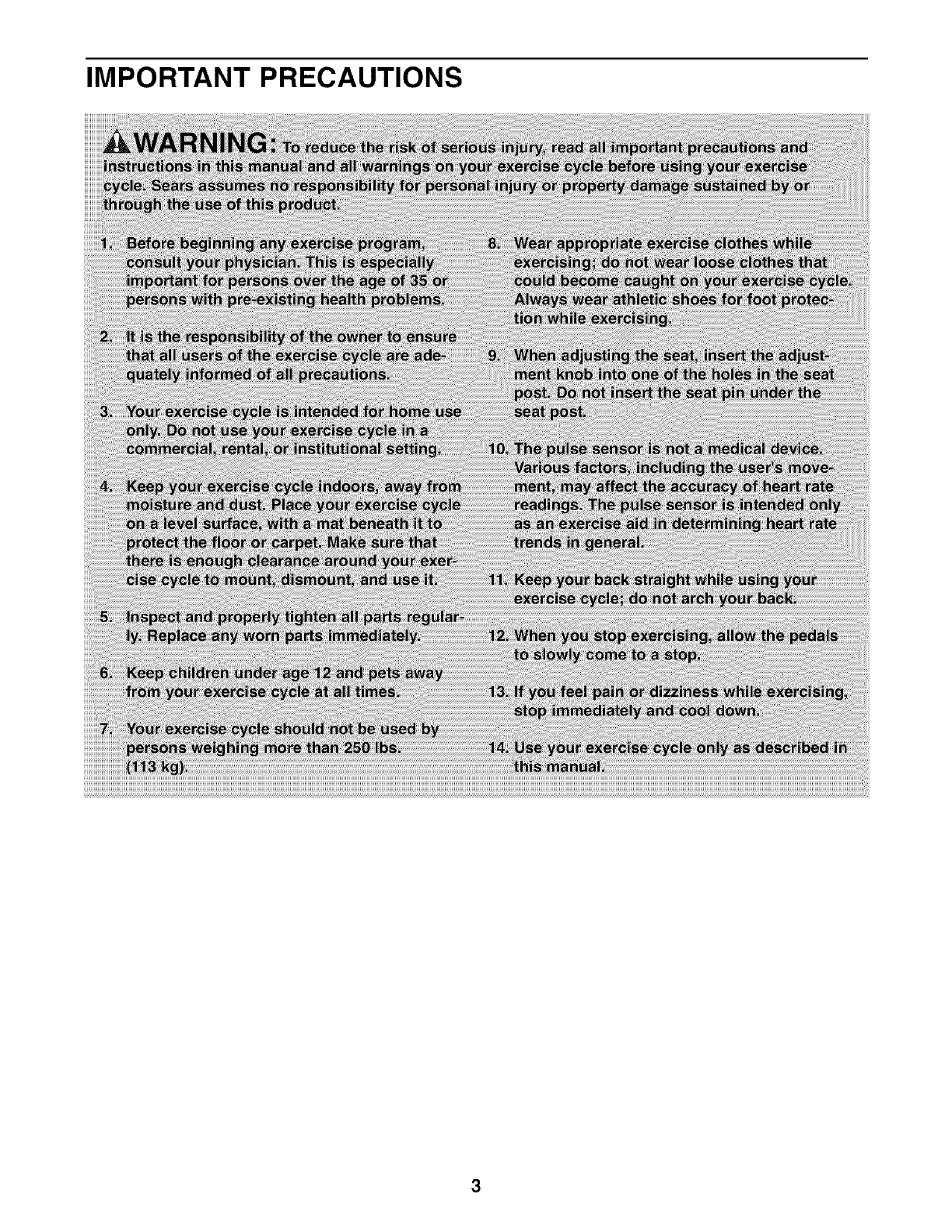 you use the exercise cycle. If you have questions