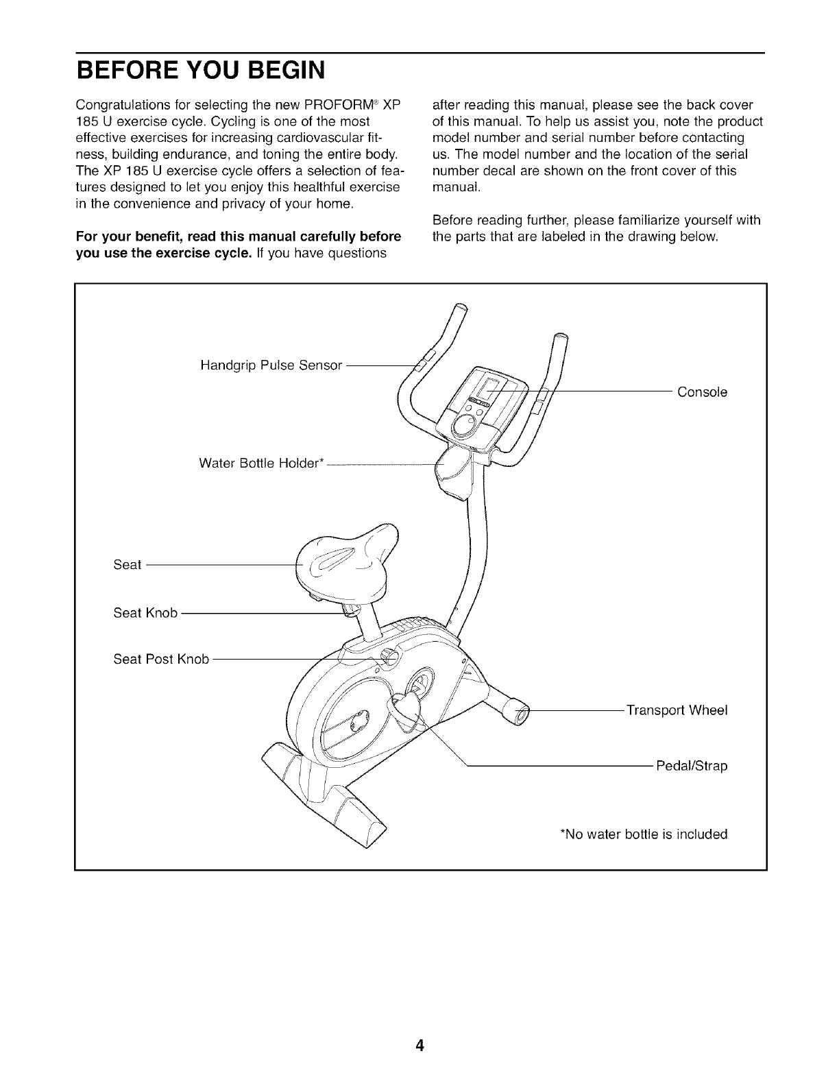 Proform 831217410 User Manual XP 185 U Manuals And Guides L0802052