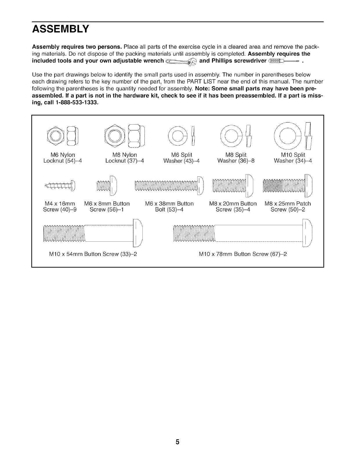 Use the part drawings below to identify the small parts used in assembly. The number in parentheses below