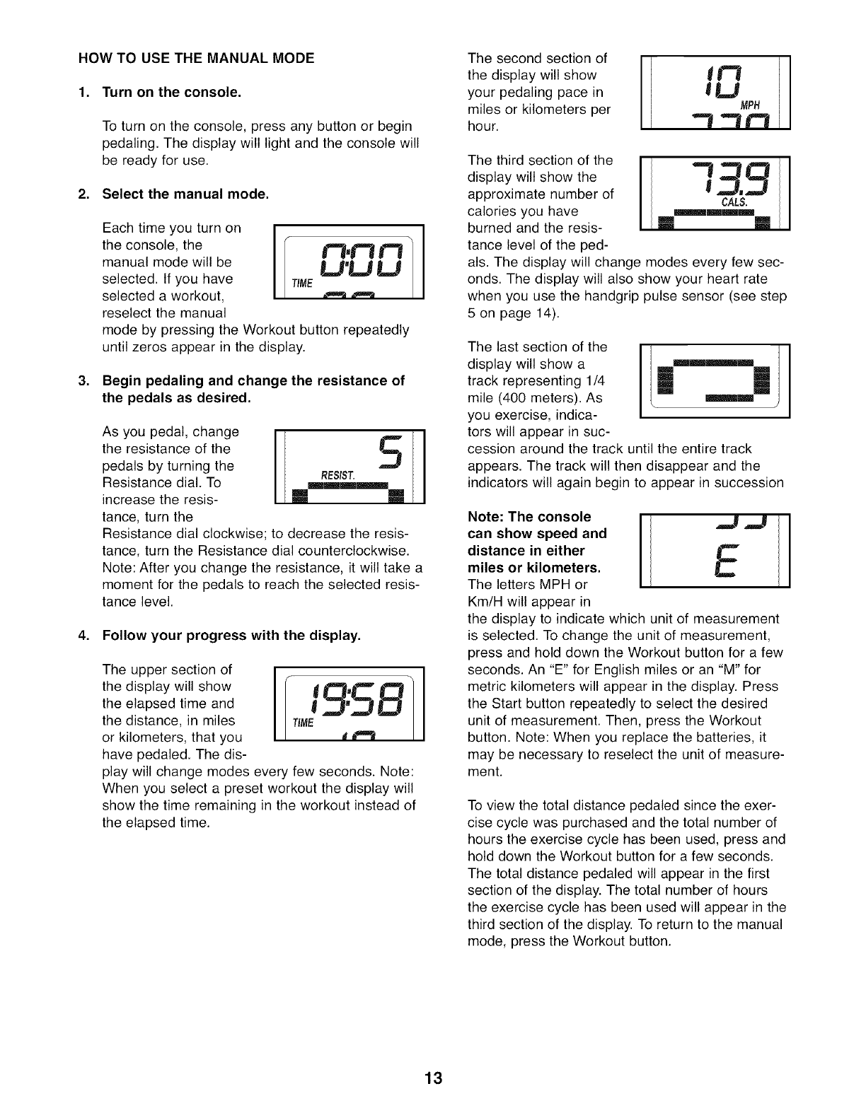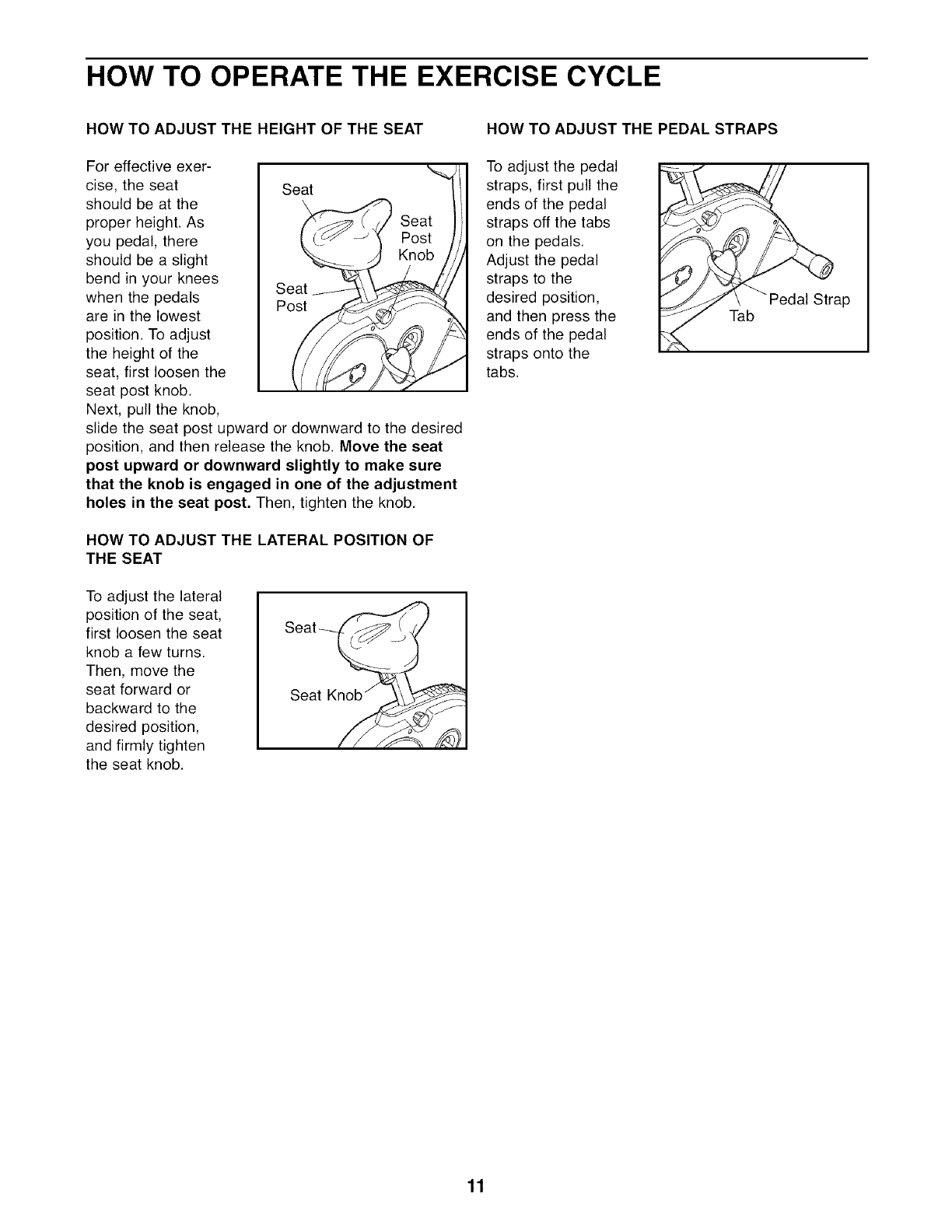 HOW TO OPERATE THE EXERCISE CYCLE ................................................... 11