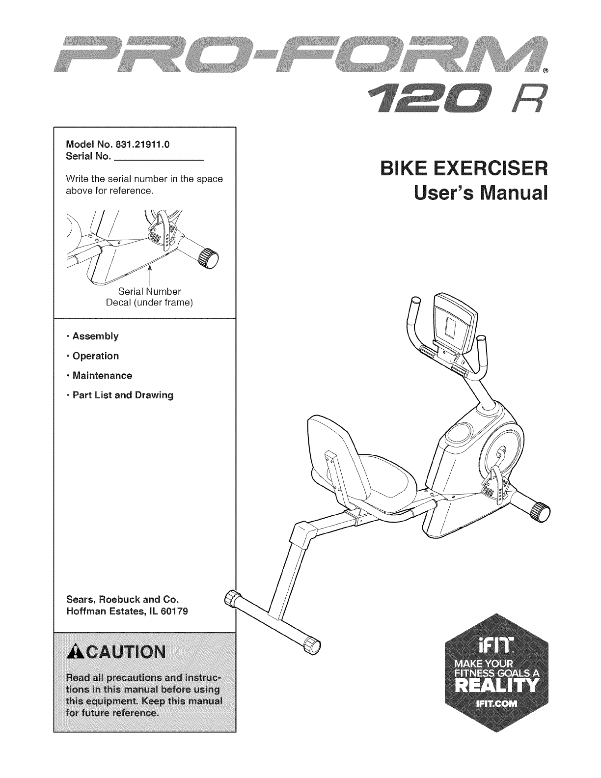 User Manual: Proform 831219110 831219110 PROFORM PROFORM 120R - Manuals and Guides View the owners manual for your PROFORM PROFORM 120R #831219110. Home:Fitness Equipment Parts:Proform Parts:Proform PROFORM 120R Manual