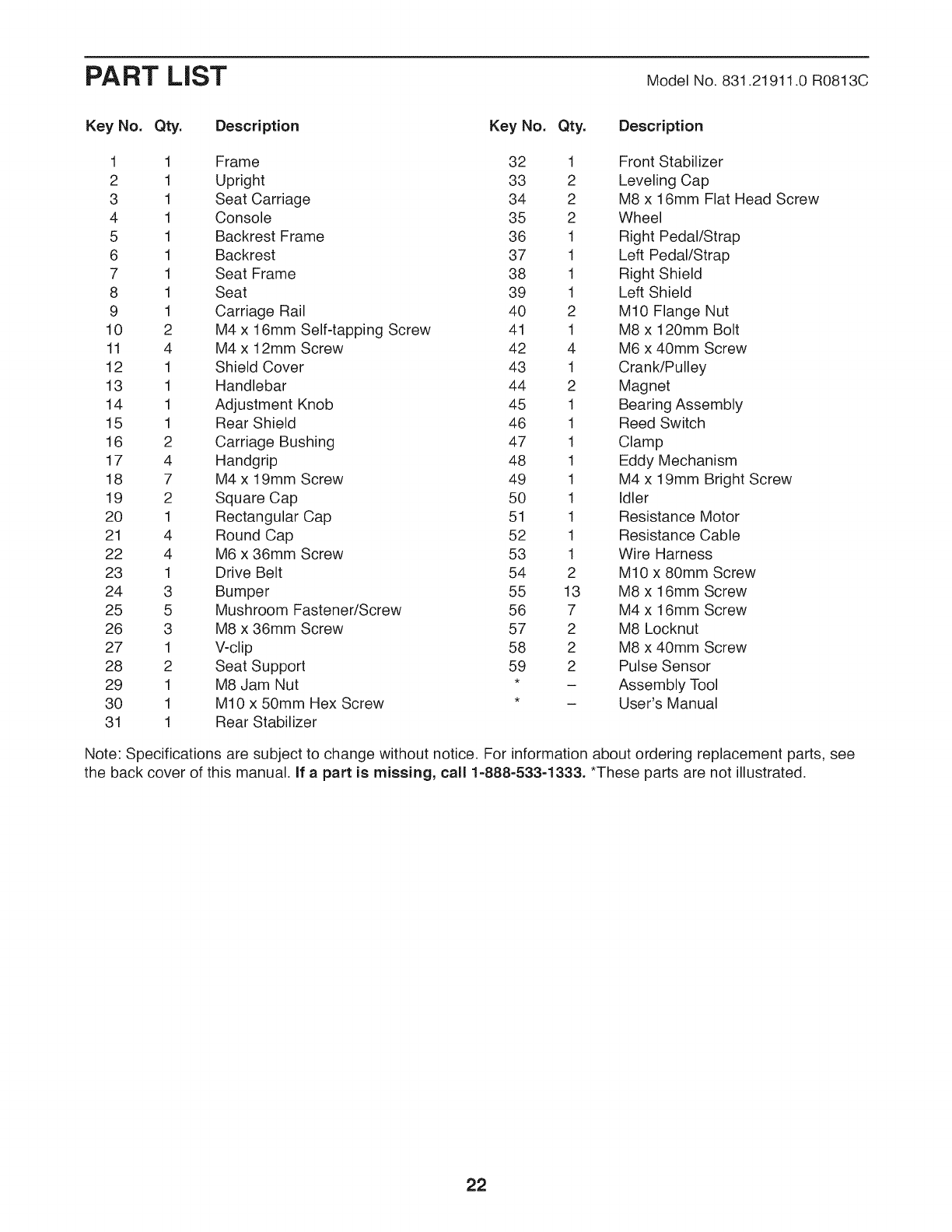 the back cover of this manual. If a part is missing, call 1-888-533-1333. *These parts are not illustrated.