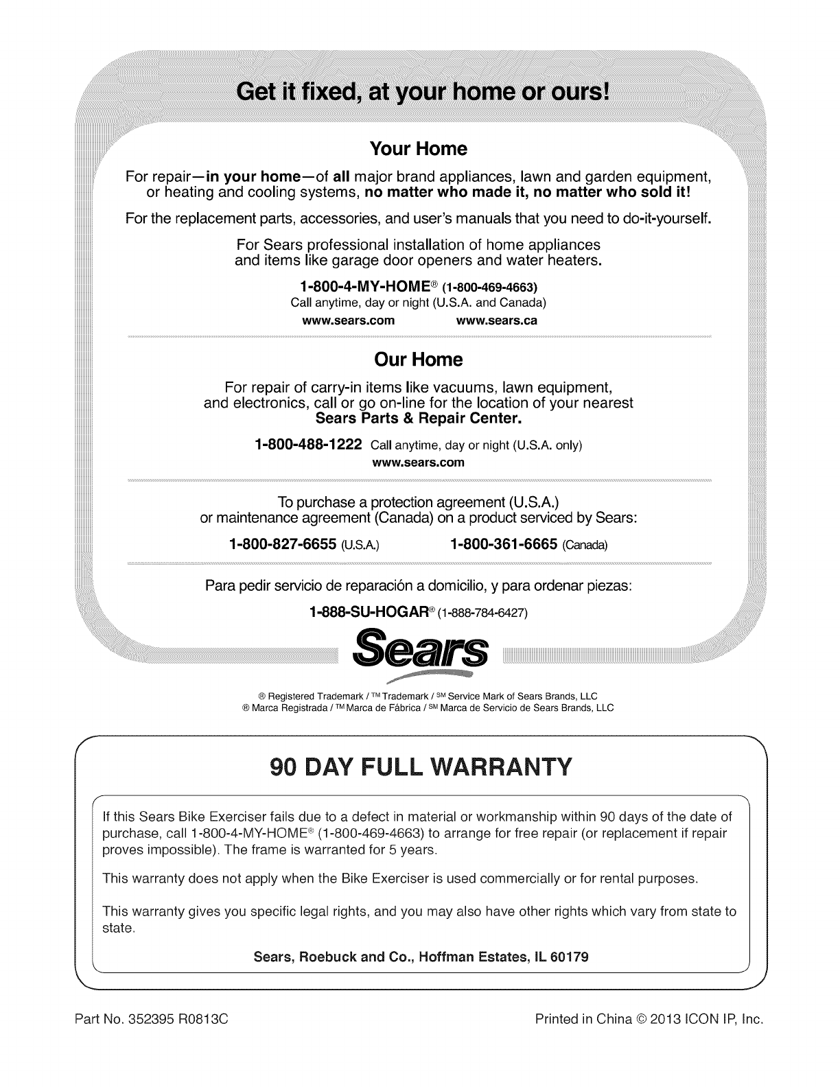 Part No. 352395 R0813C Printed in China © 2013 ICON IP, Inc.