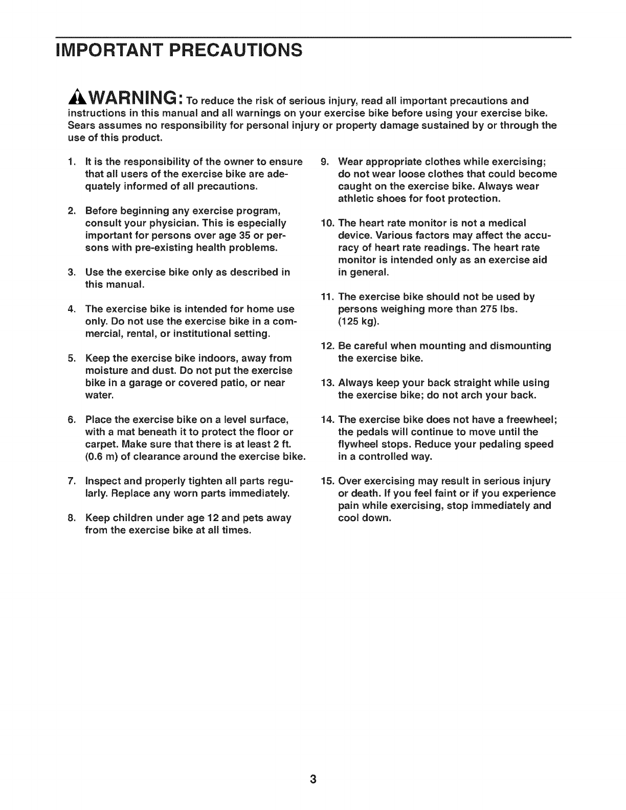 instructions in this manual and all warnings on your exercise bike before using your exercise bike.