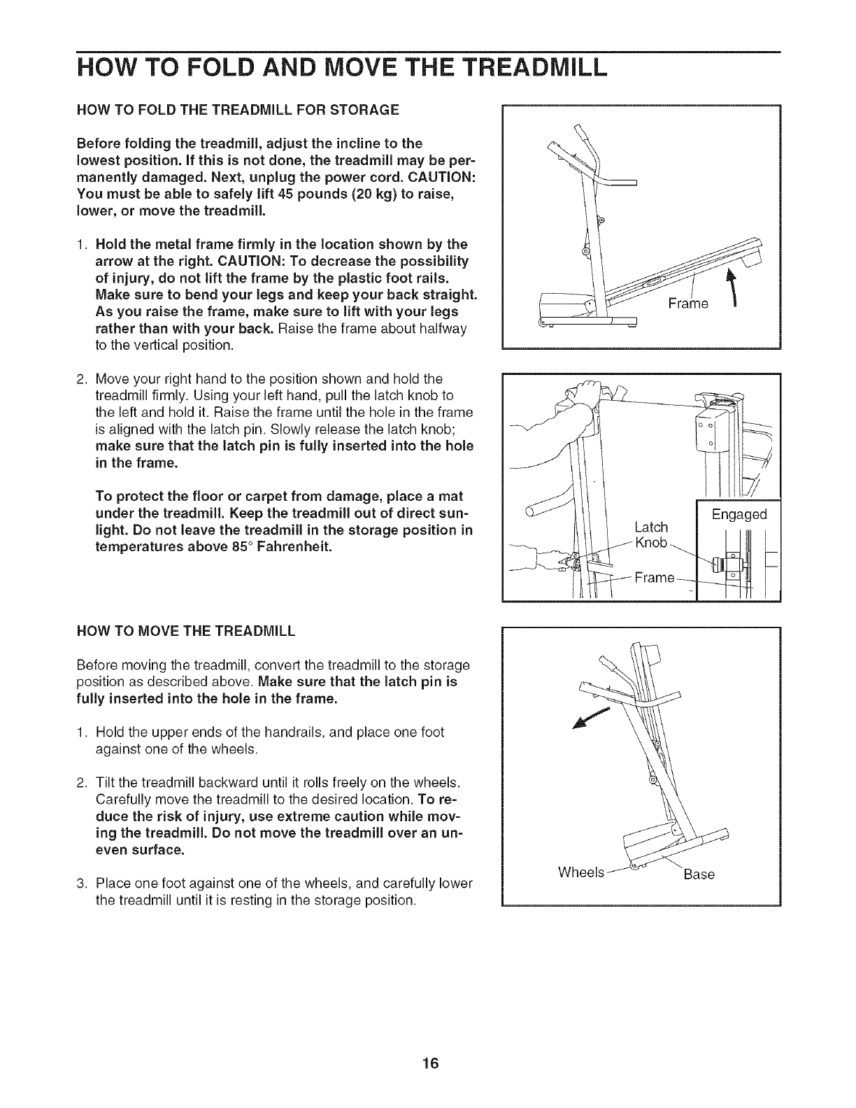 HOW TO FOLD AND MOVE THE TREADMILL .................................................. 16
