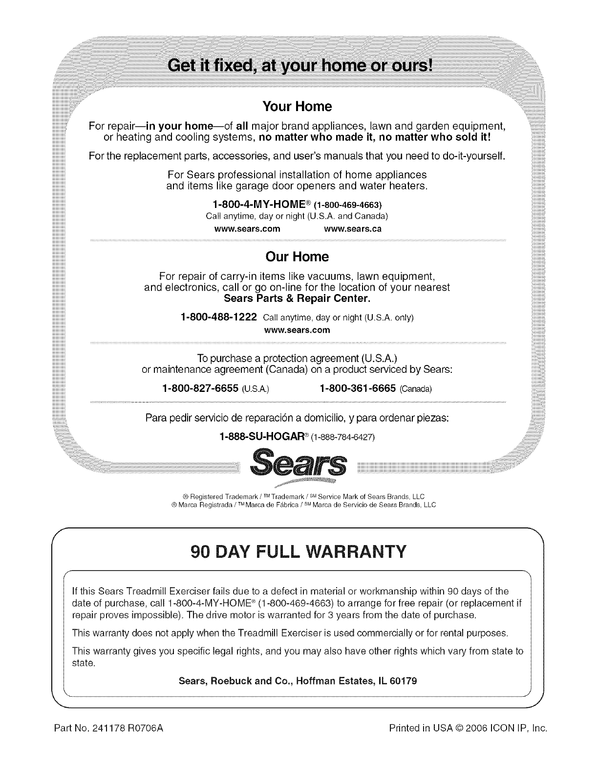 Part No. 241178 RO706A Printed in USA © 2006 iCON IP, Inc.