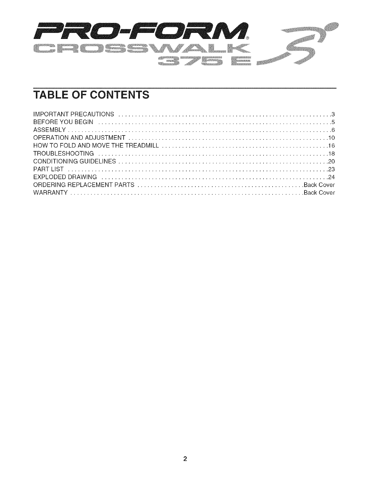 Proform 831246230 User Manual CROSSWALK 375e Manuals And Guides L0609256