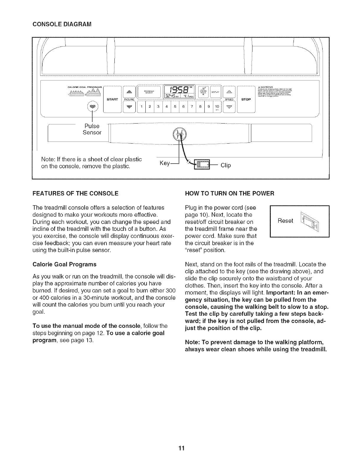 treadmill (see the front cover of this manual for the lo-