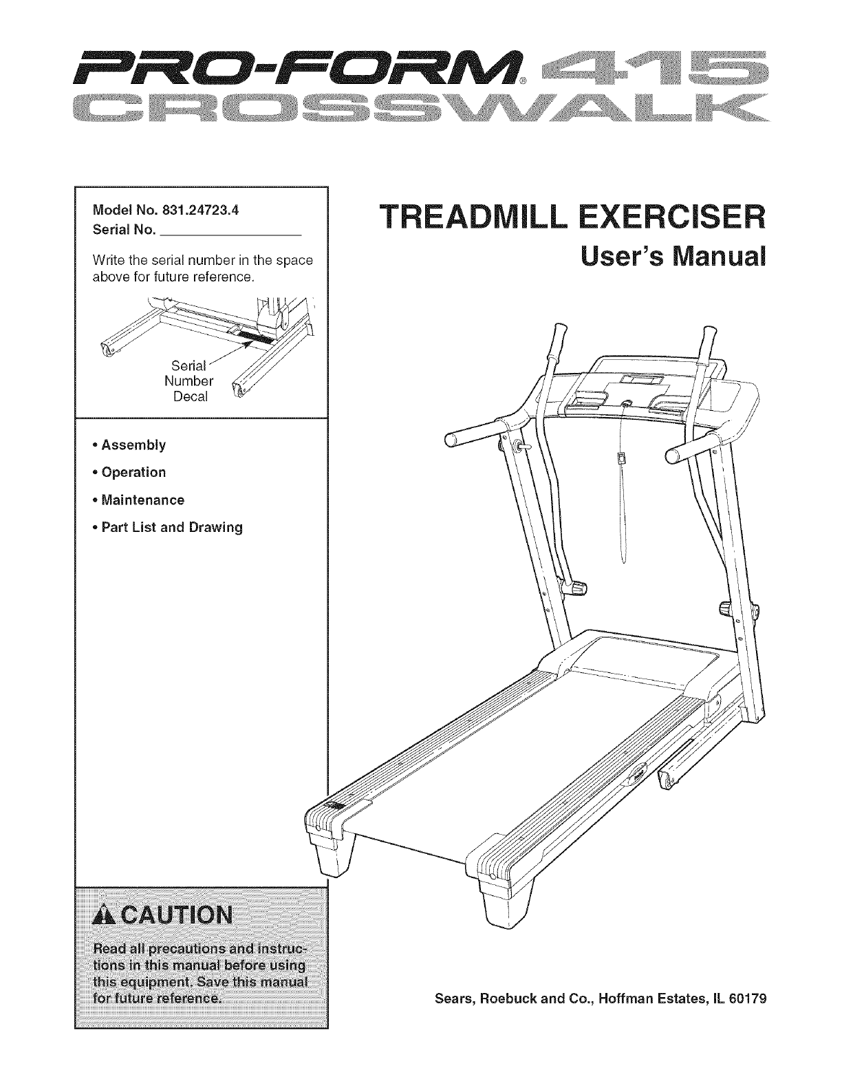 User Manual: Proform 831247234 831247234 PROFORM TREADMILL - Manuals and Guides View the owners manual for your PROFORM TREADMILL #831247234. Home:Fitness Equipment Parts:Proform Parts:Proform TREADMILL Manual