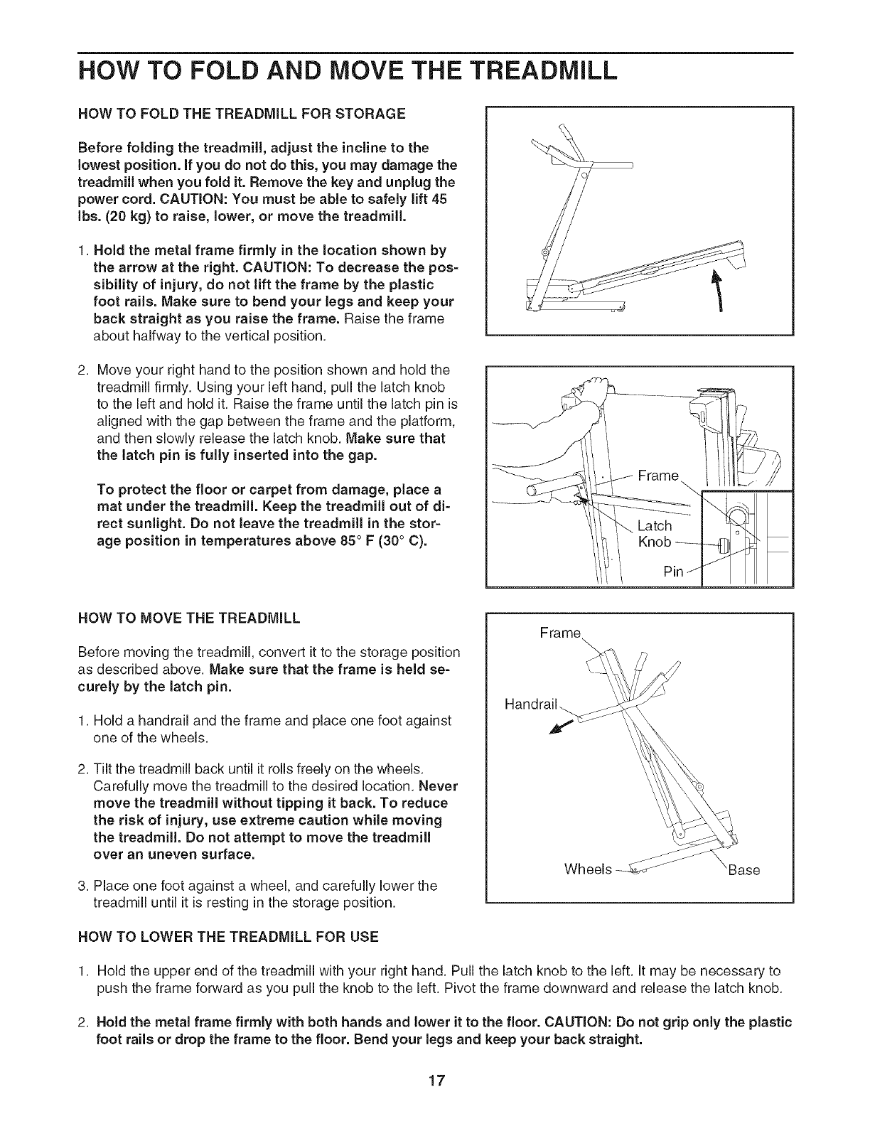 HOW TO FOLD AND MOVE THE TREADMILL .................................................. 17