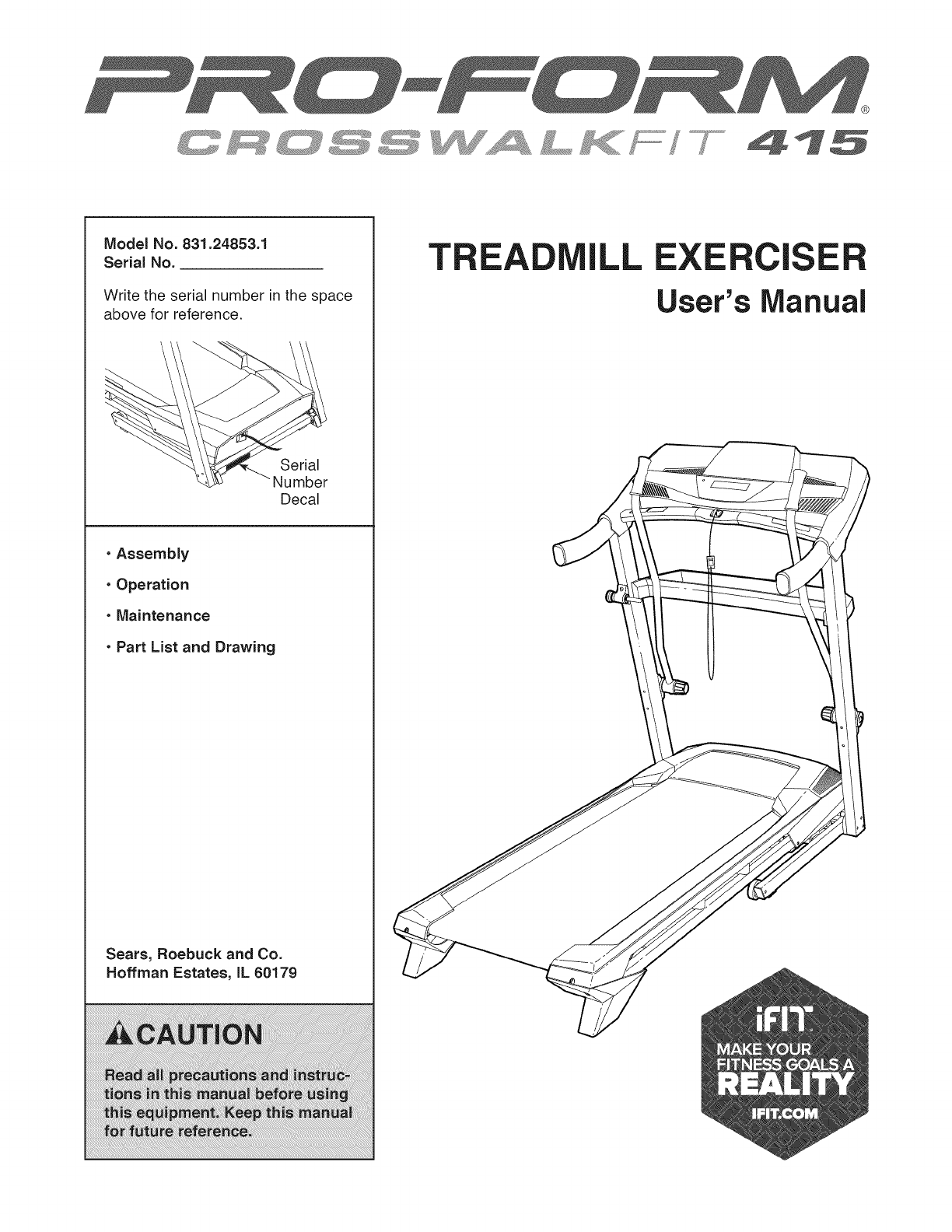 User Manual: Proform 831248531 831248531 PROFORM PROFORM CROSSWALK FIT 415 - Manuals and Guides View the owners manual for your PROFORM PROFORM CROSSWALK FIT 415 #831248531. Home:Fitness Equipment Parts:Proform Parts:Proform PROFORM CROSSWALK FIT 415 Manual
