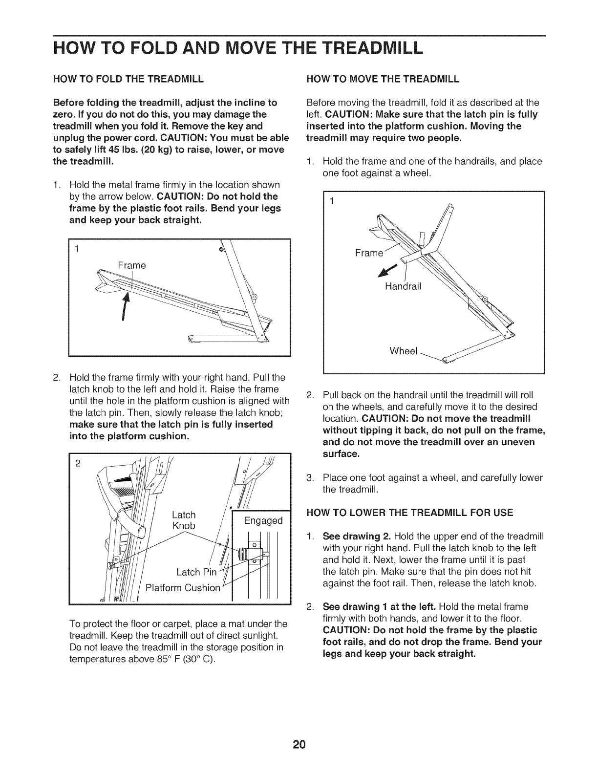 HOW TO FOLD AND MOVE THE TREADMILL ................................................... 20