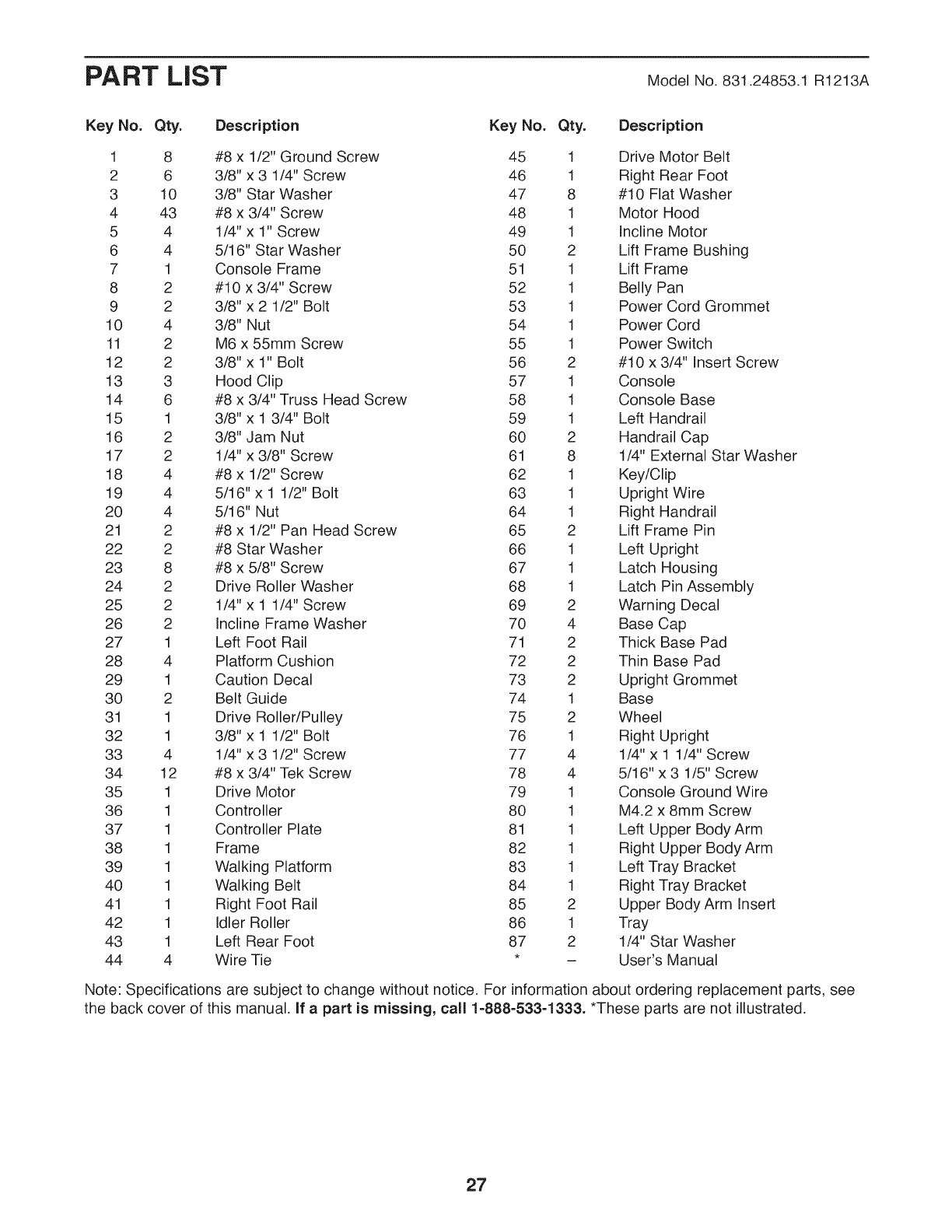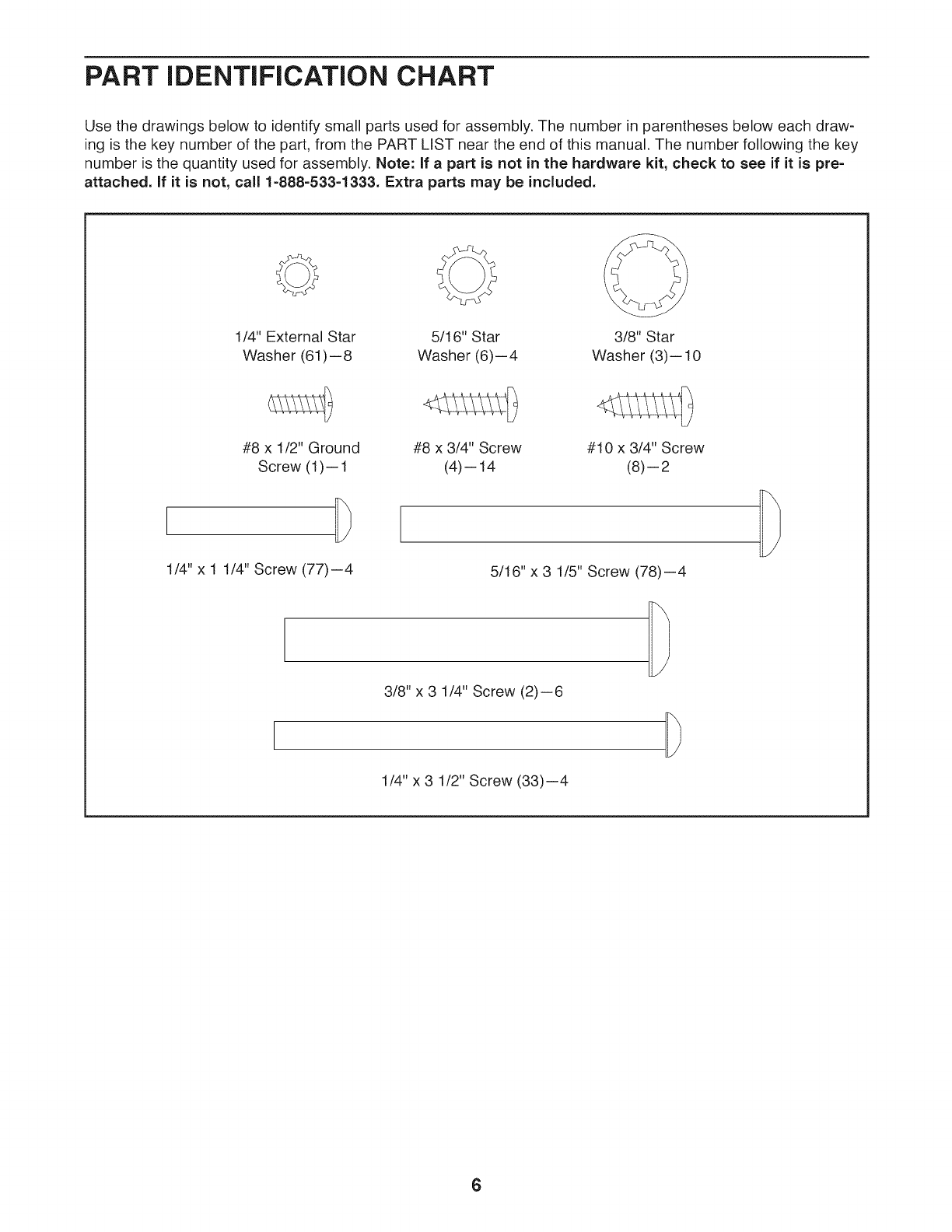 the back cover of this manual, if a part is missing, call 1-888-533-1333. *These parts are not illustrated.