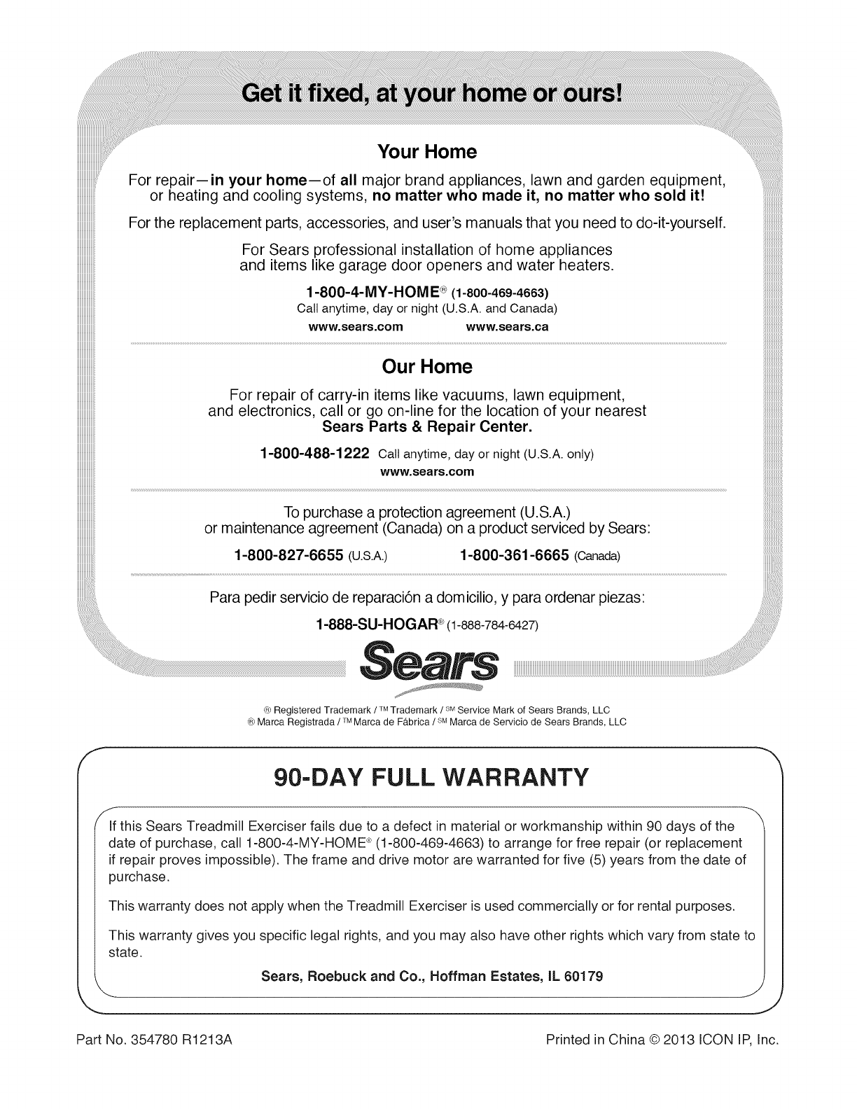 Part No. 354780 R1213A Printed in China © 2013 ICON IP, Inc.