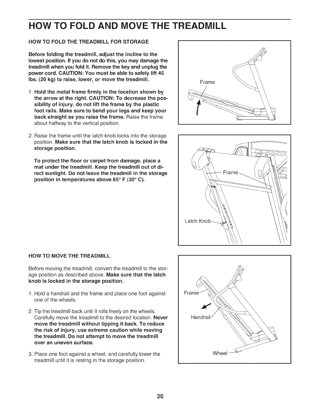 HOW TO FOLD AND MOVE THE TREADMILL .................................................. 20